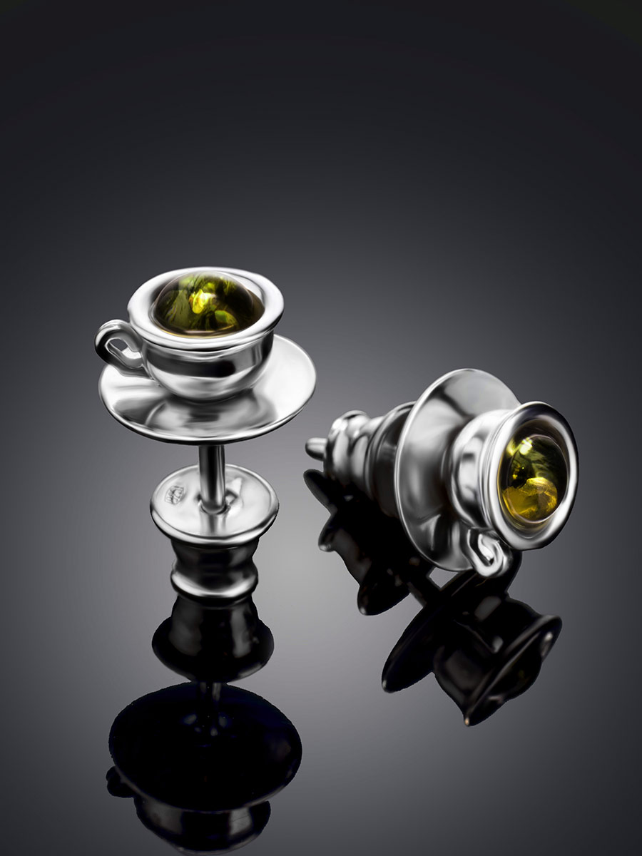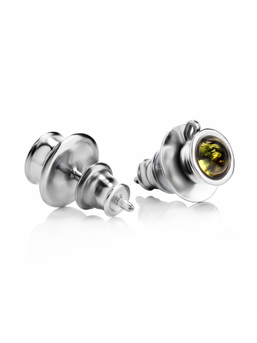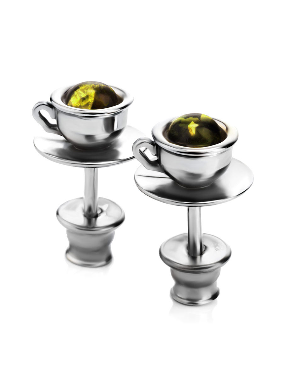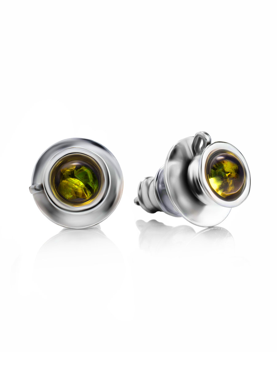 Стильные серьги-гвоздики из зелёного янтаря Hasta Barista