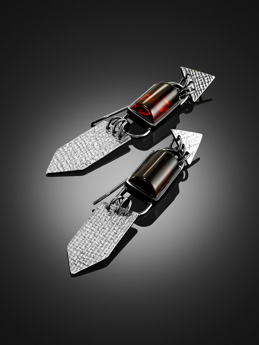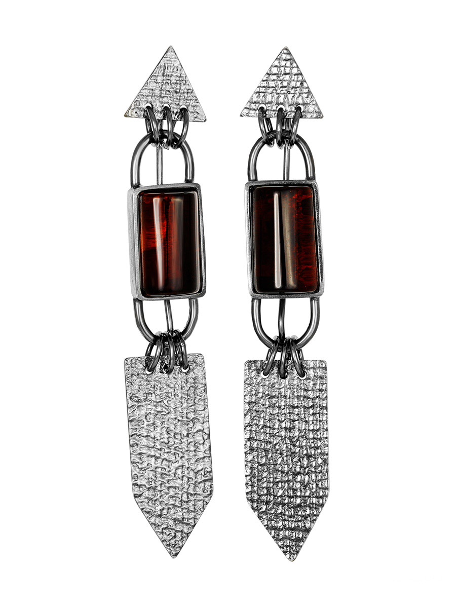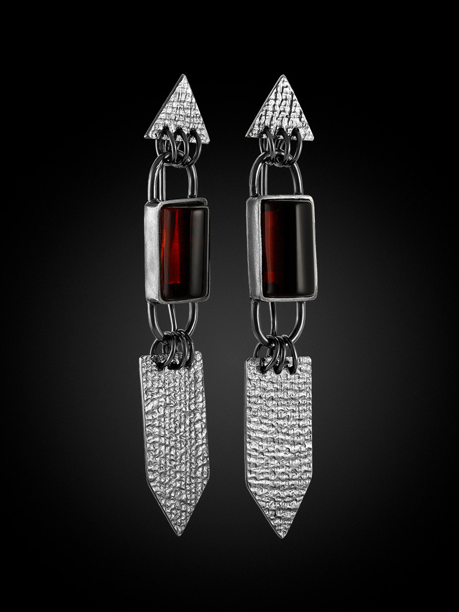 Стильные серьги из насыщенно-вишневого янтаря «Канкун»