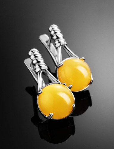 Стильные серьги из натурального медового янтаря «Шанхай»