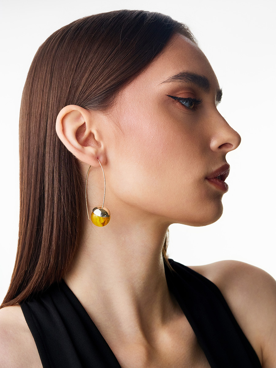 Стильные серьги из янтаря с инклюзами «Клио»