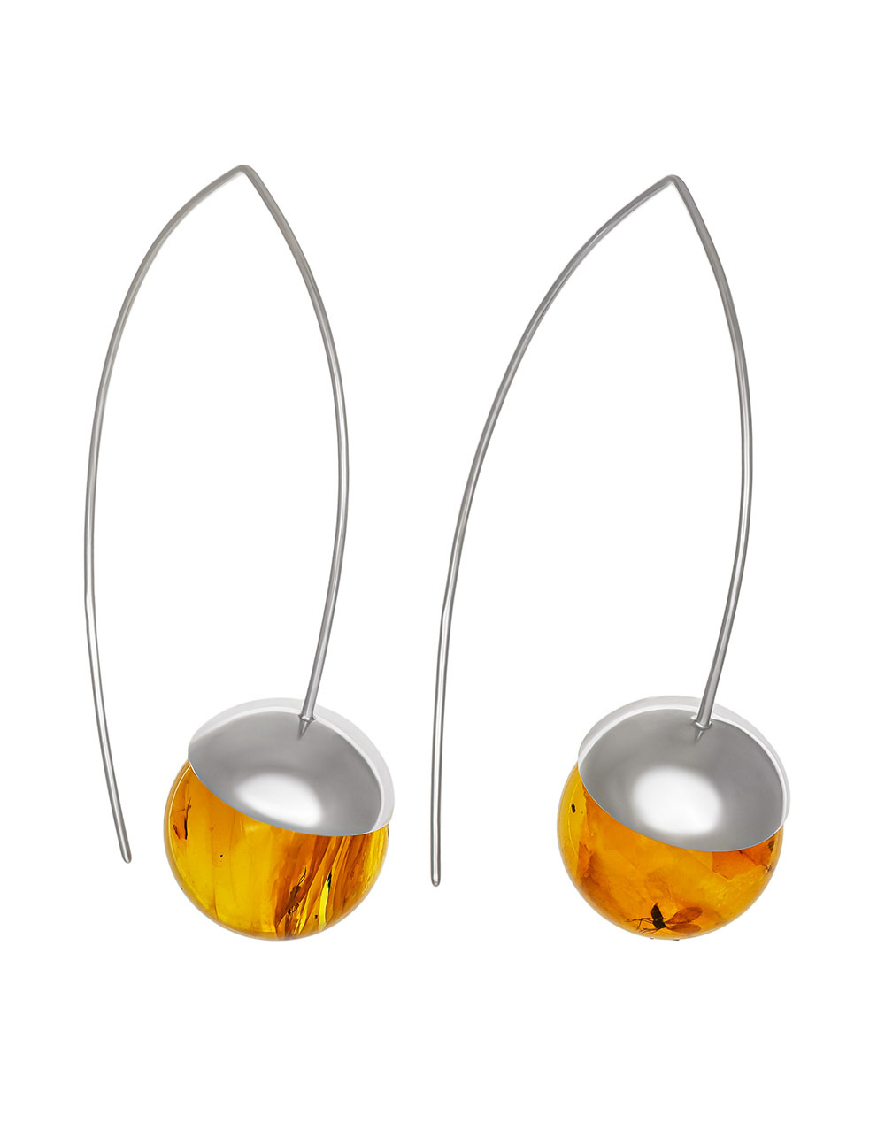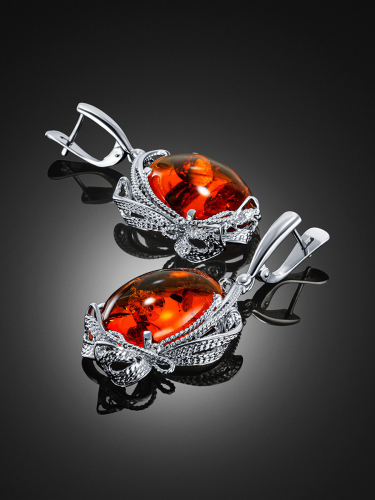 Стильные серьги-крючки «Клио» с янтарём с инклюзами