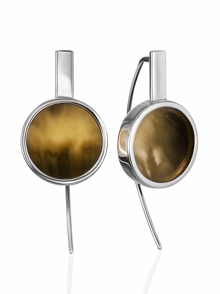Стильные серьги-крючки с текстурным янтарём Palazzo