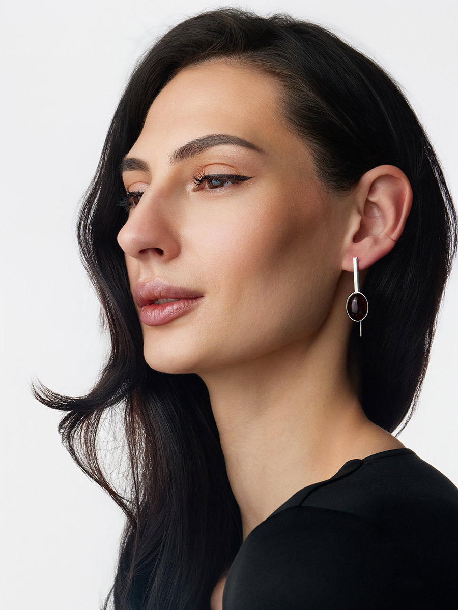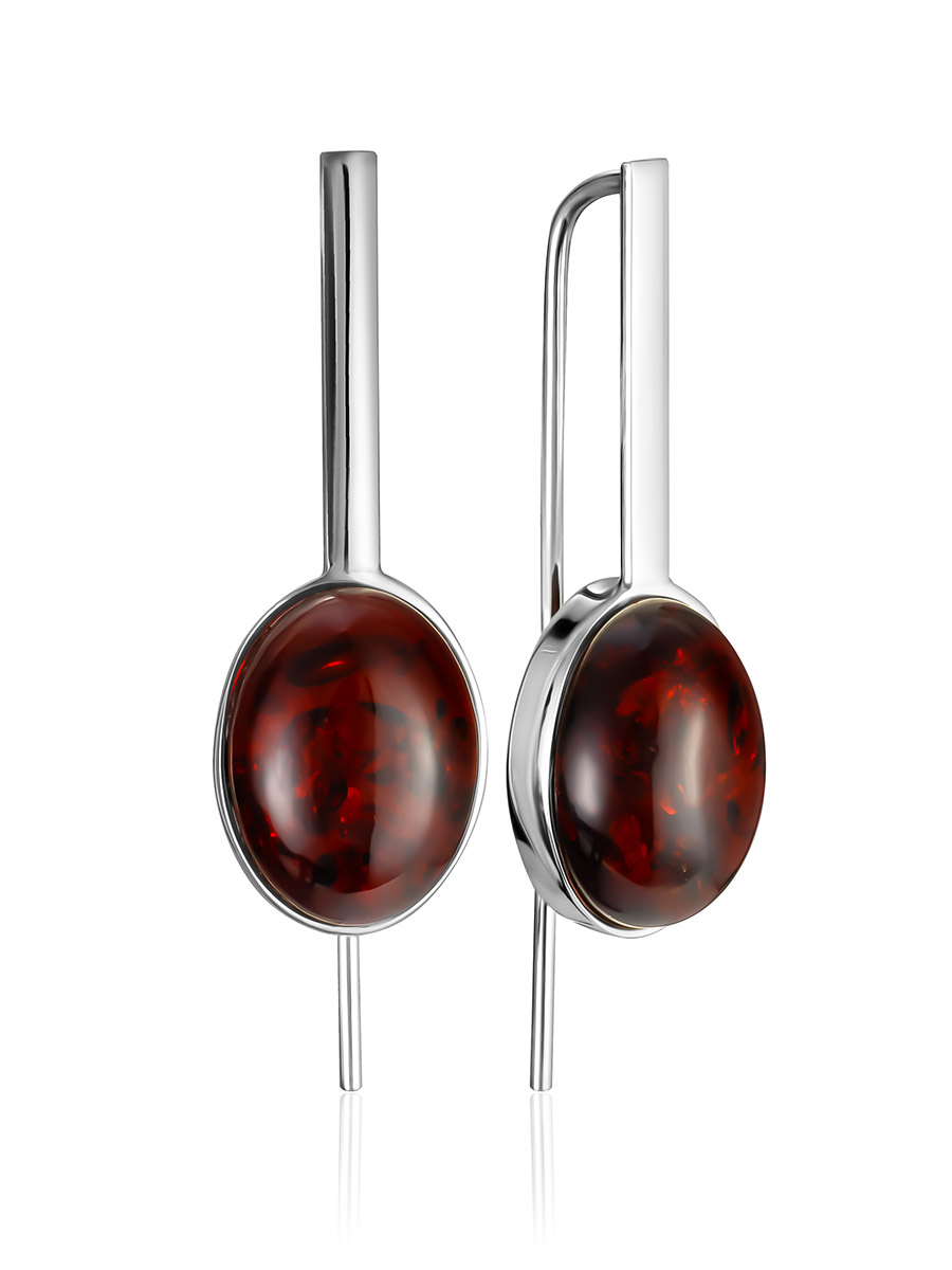 Стильные серьги-крючки с тёмно-вишнёвым янтарём «Годжи»