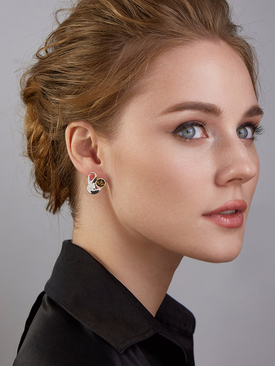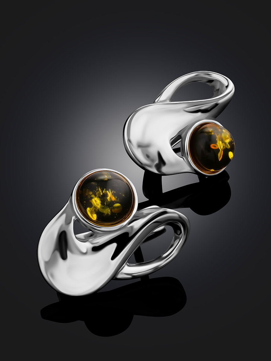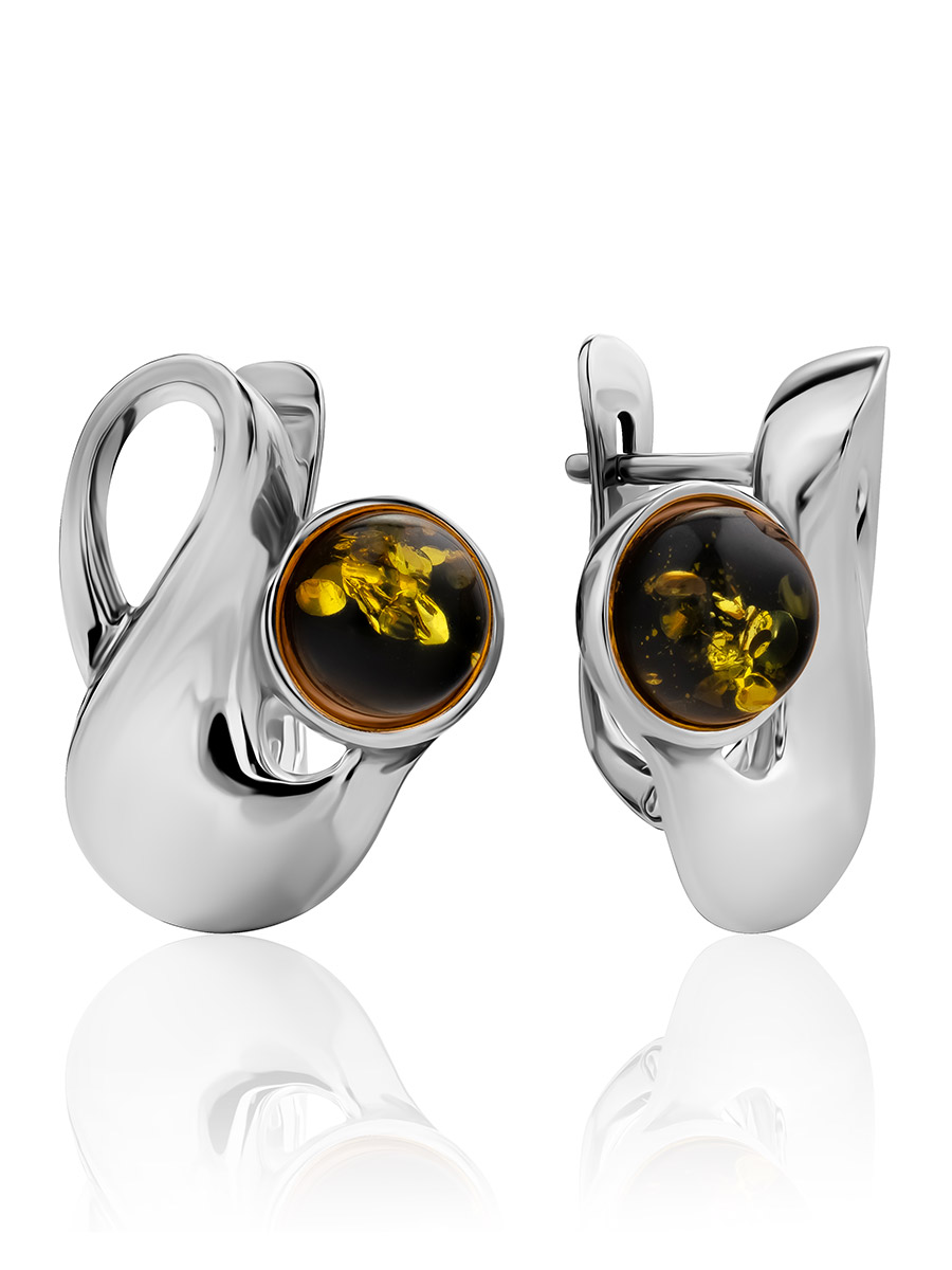 Стильные серьги «Маверикс», украшенные янтарём зелёного цвета