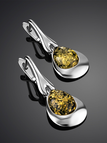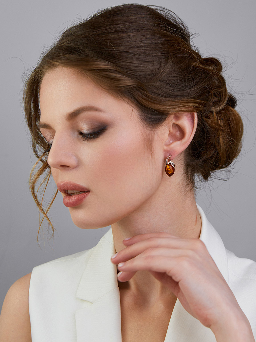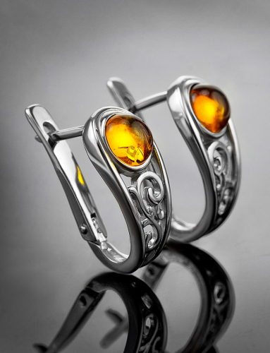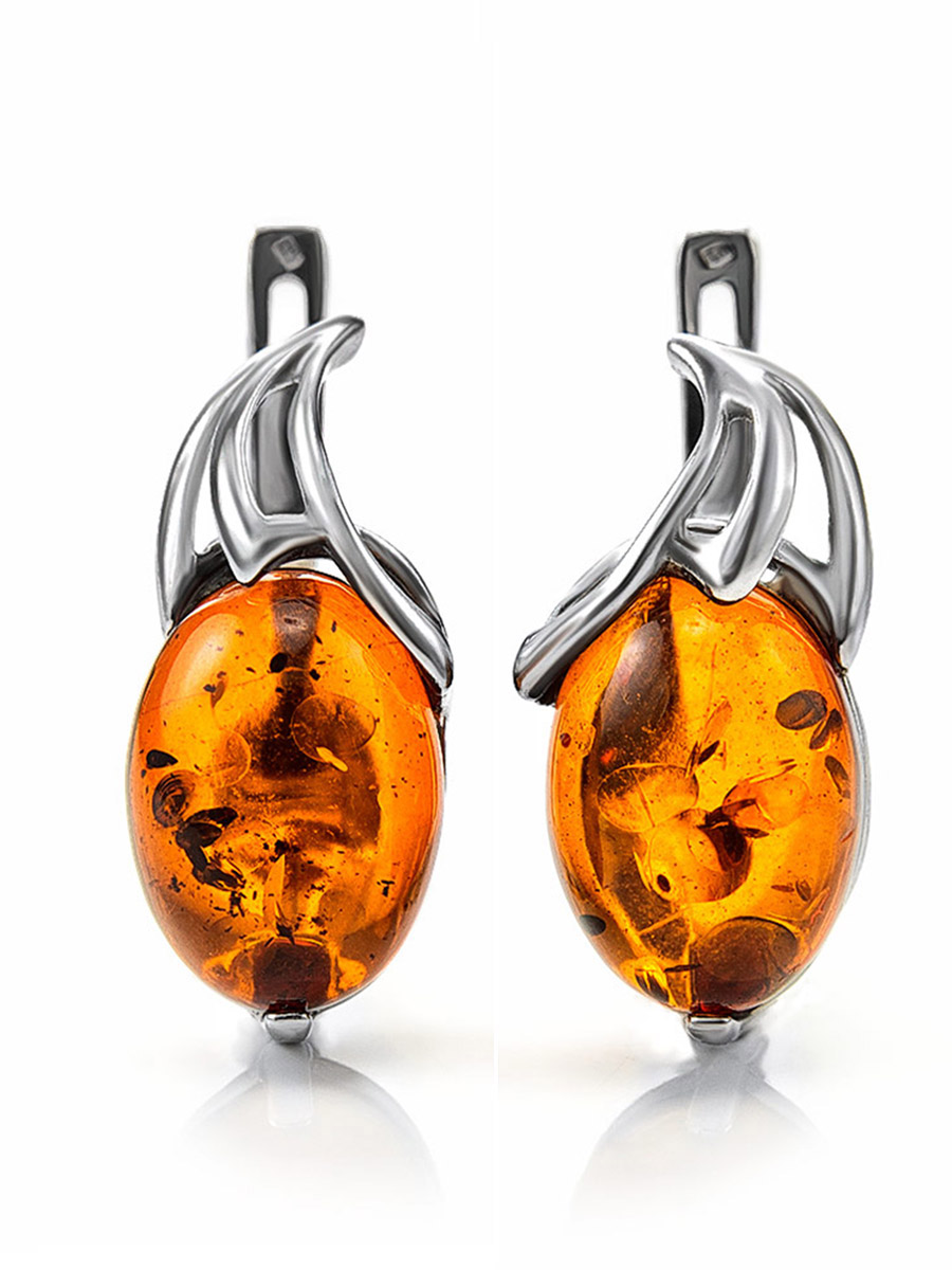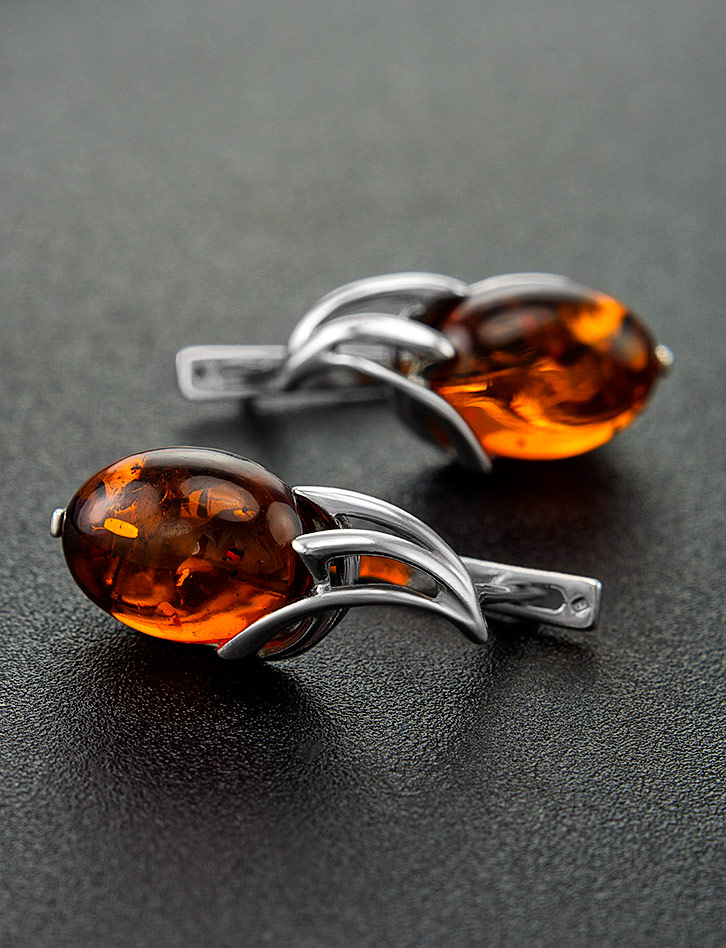 Стильные серьги с натуральным янтарём коньячного цвета «Палермо»