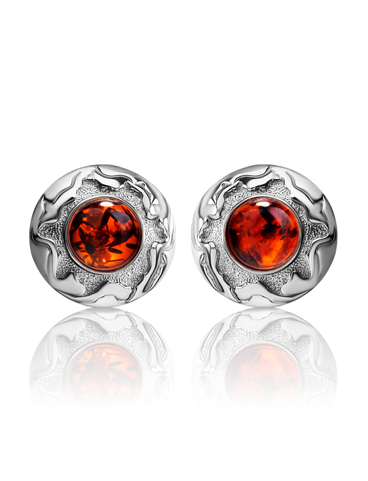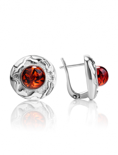 Стильные серьги с янтарём вишнёвого цвета «Илиада»