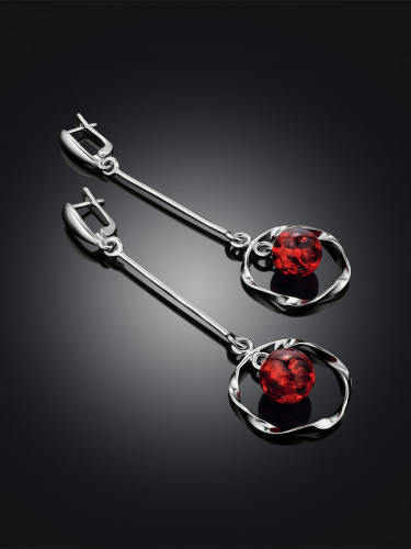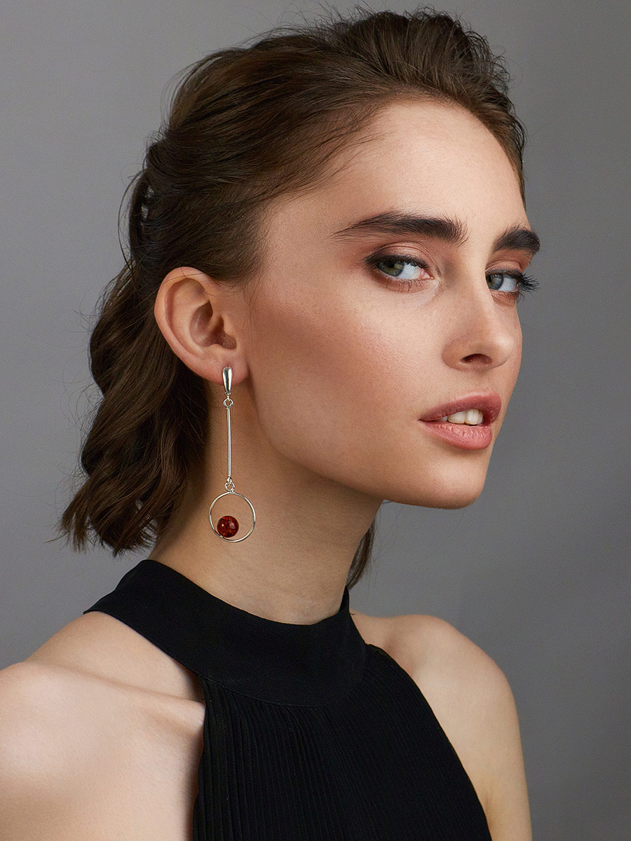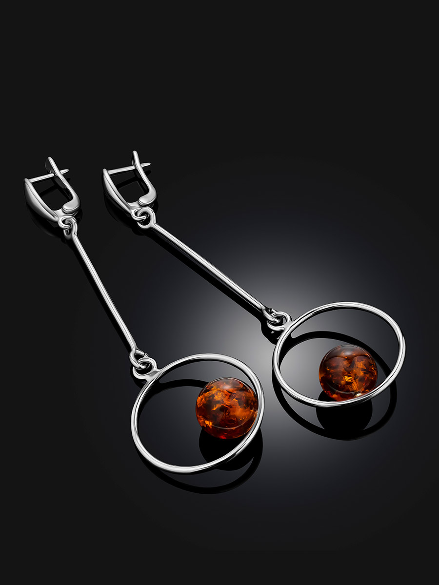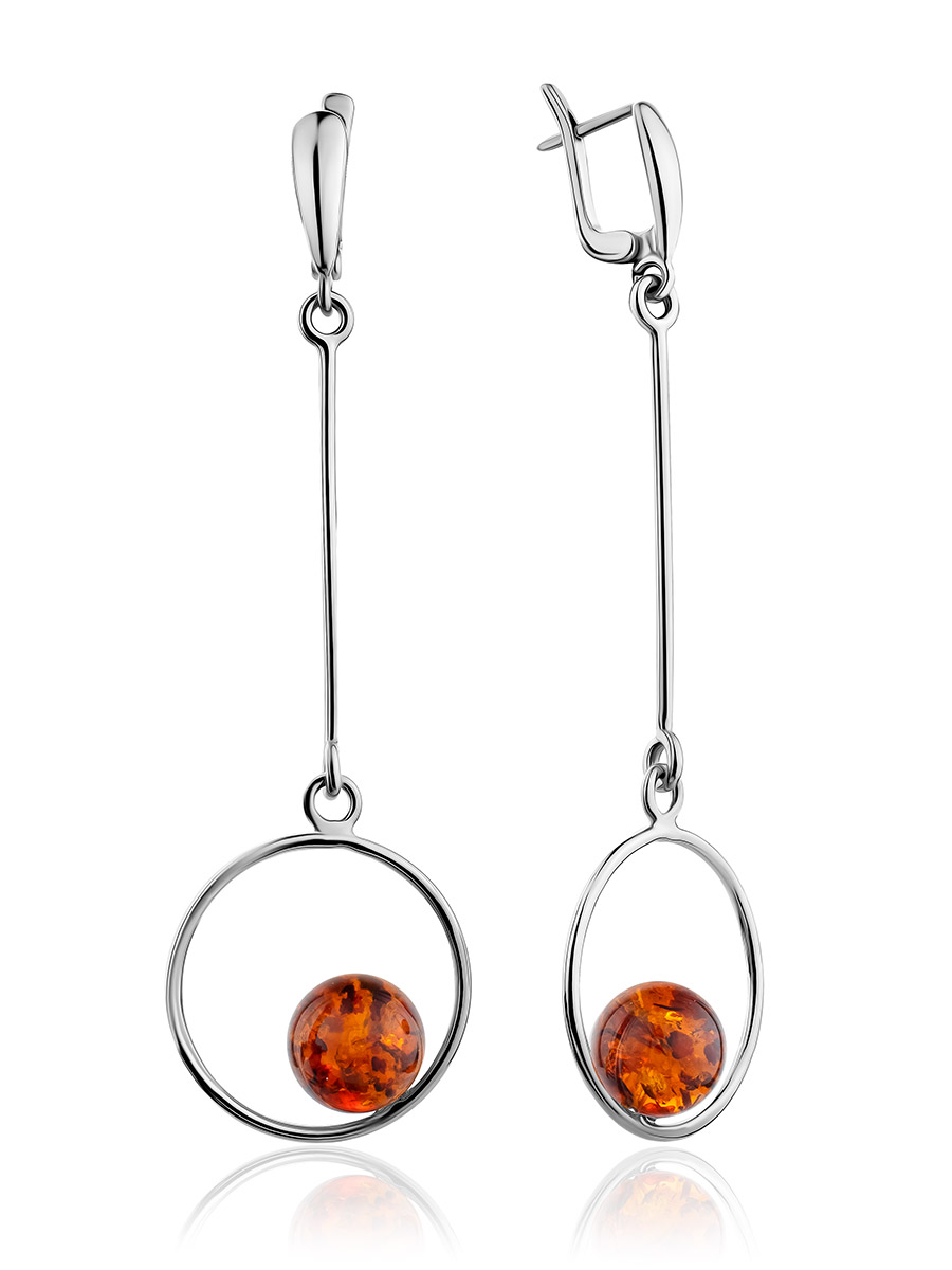 Стильные удлинённые серьги из янтаря коньячного цвета «Юпитер»