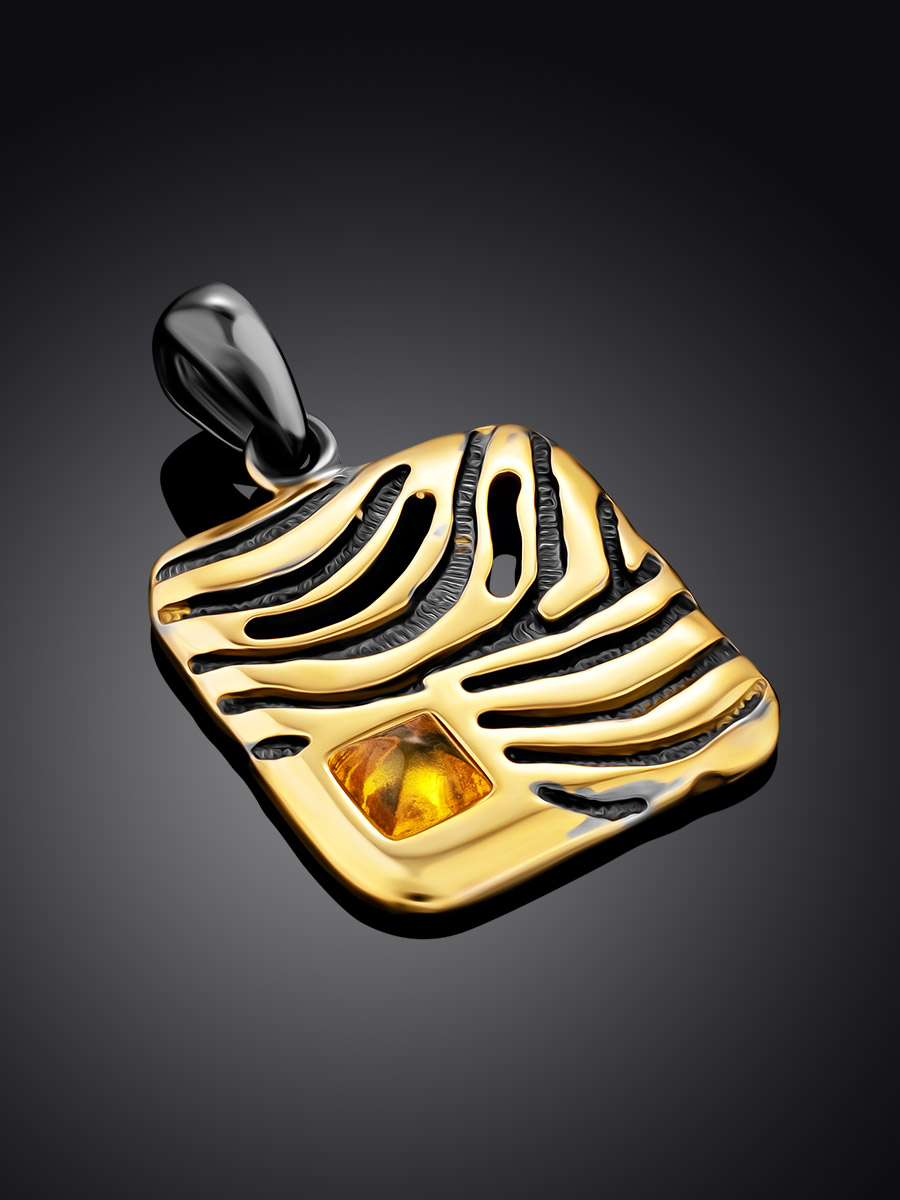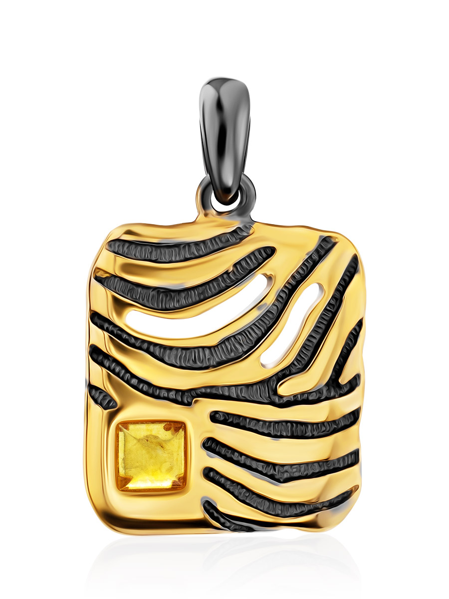 Стильный ажурный кулон «Донателла» с золотисто-лимонным янтарём