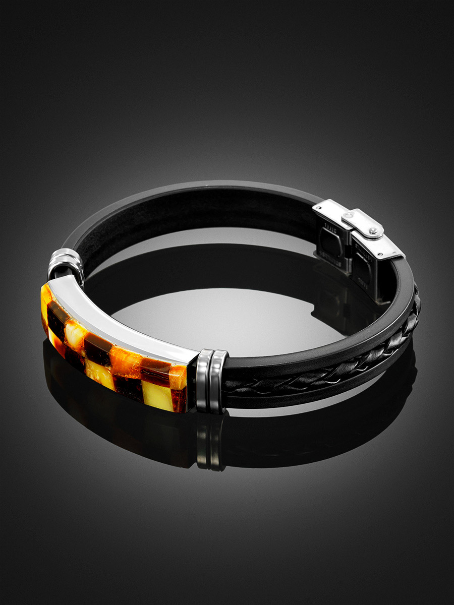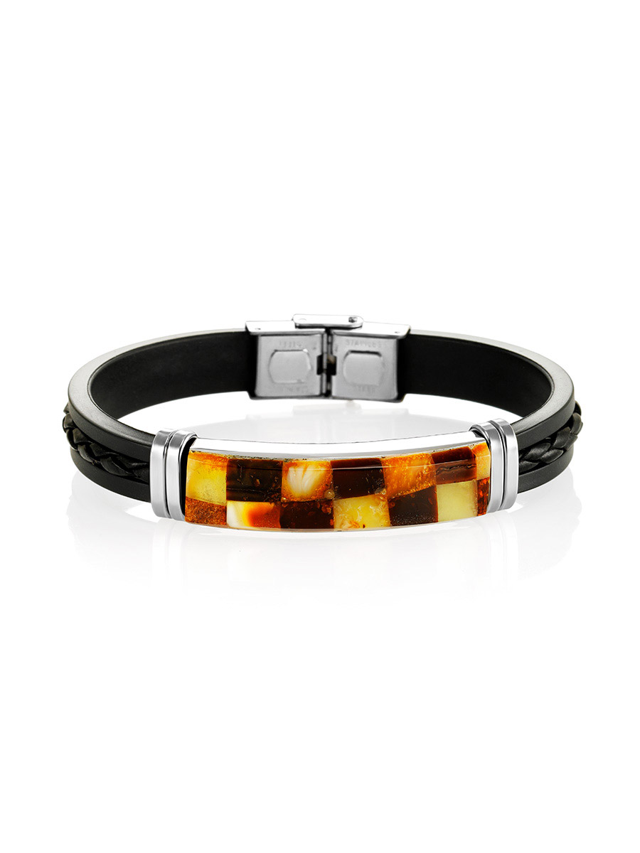 Стильный браслет для мужчин на каучуковой основе, украшенный янтарной мозаикой «Сильверстоун»