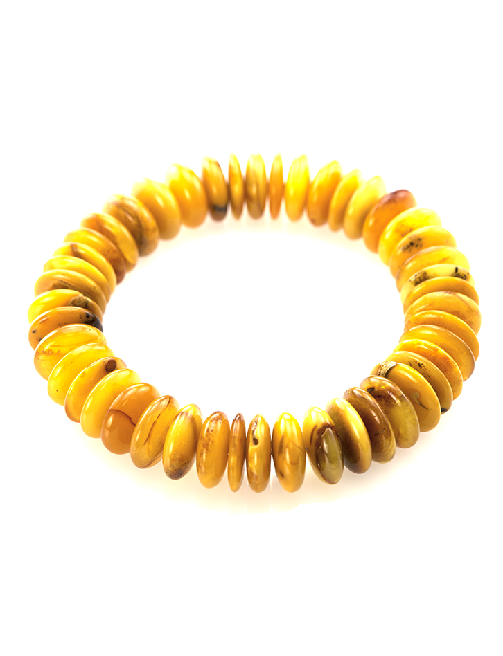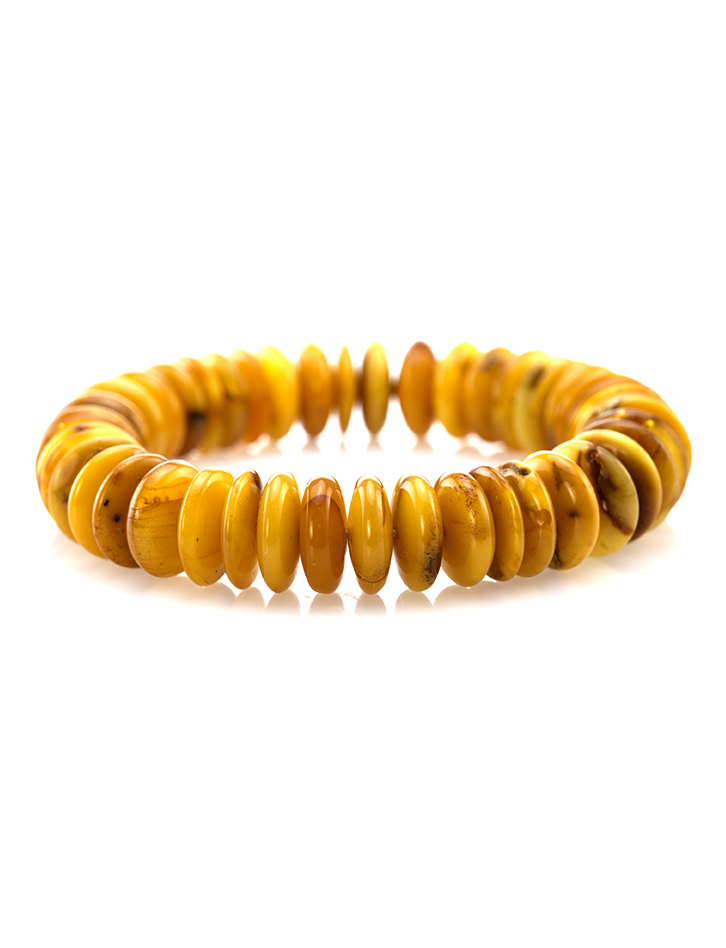 Стильный браслет из натурального балтийского янтаря с эффектом старения «Карамель медовая текстурная»