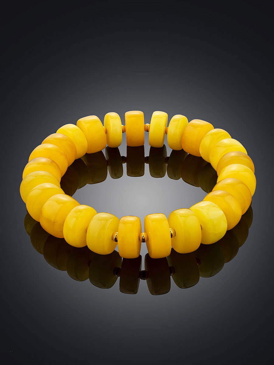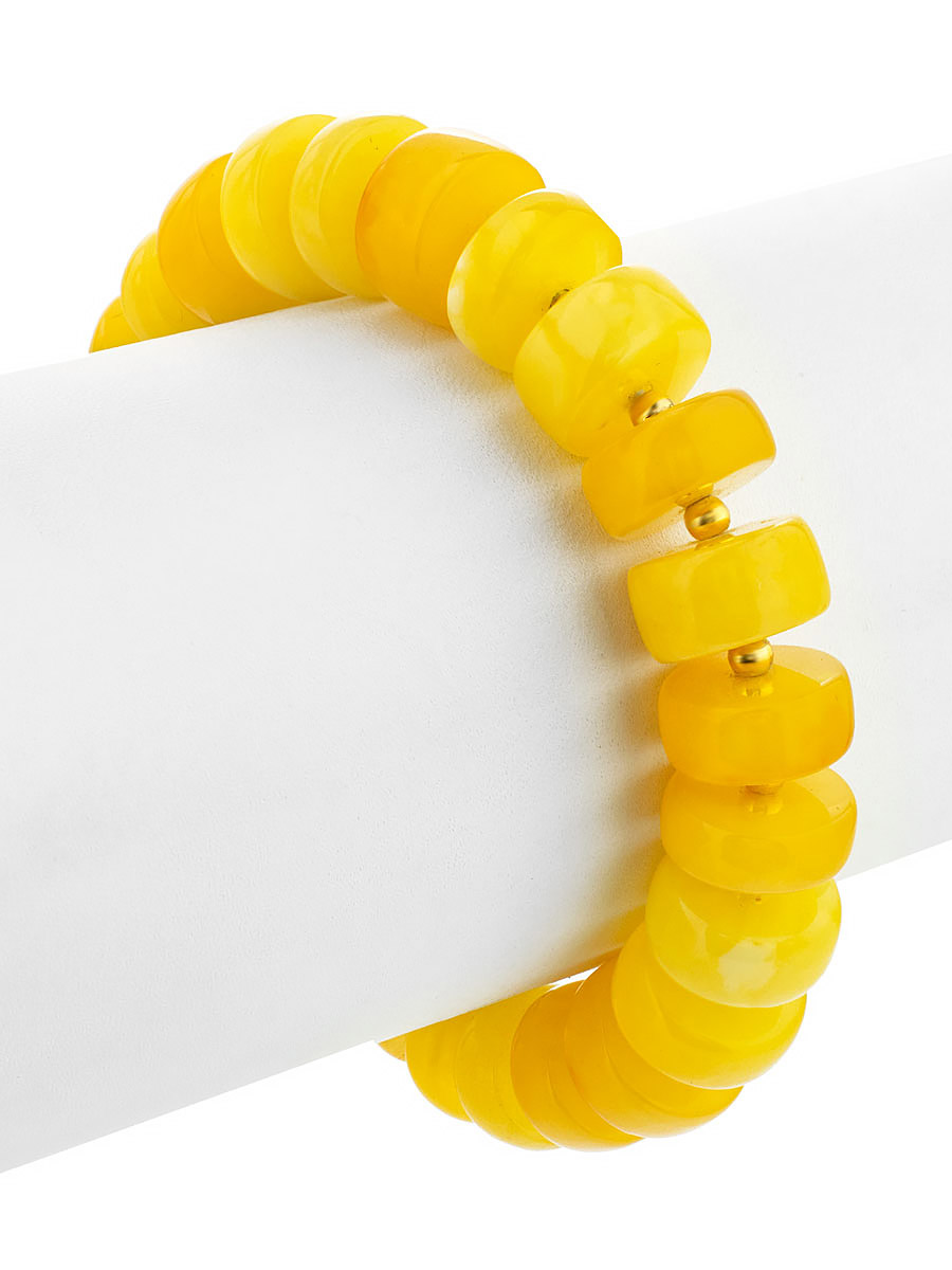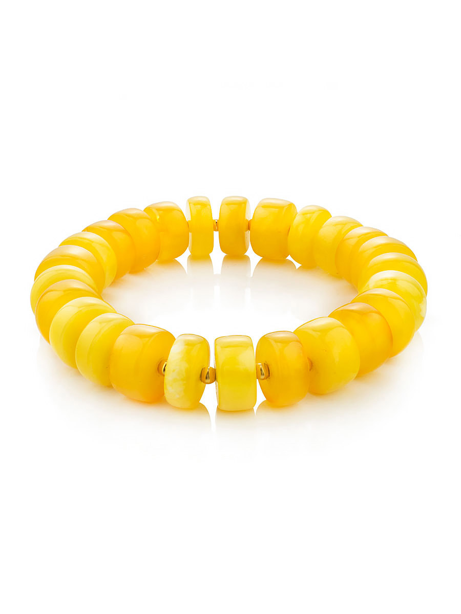 Стильный браслет из натурального ярко-медового янтаря «Шайба глянцевая»
