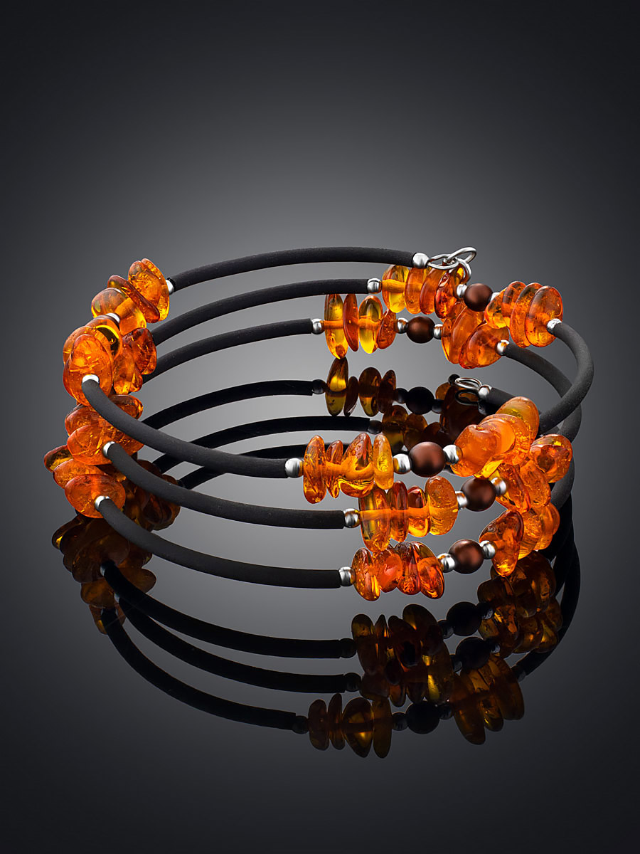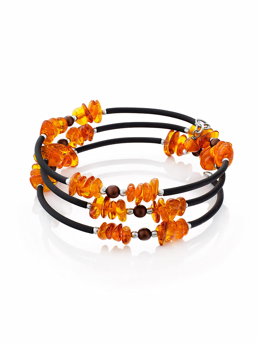 Стильный браслет на каучуковой струне с натуральным янтарём «Оклахома»