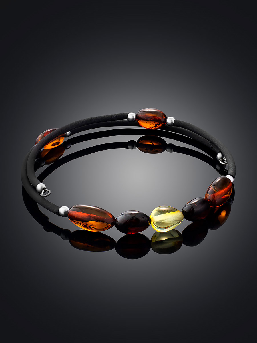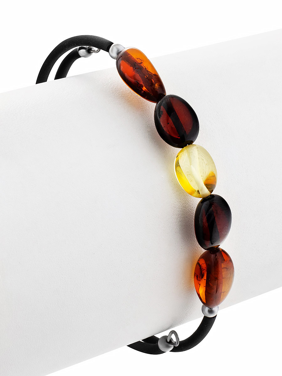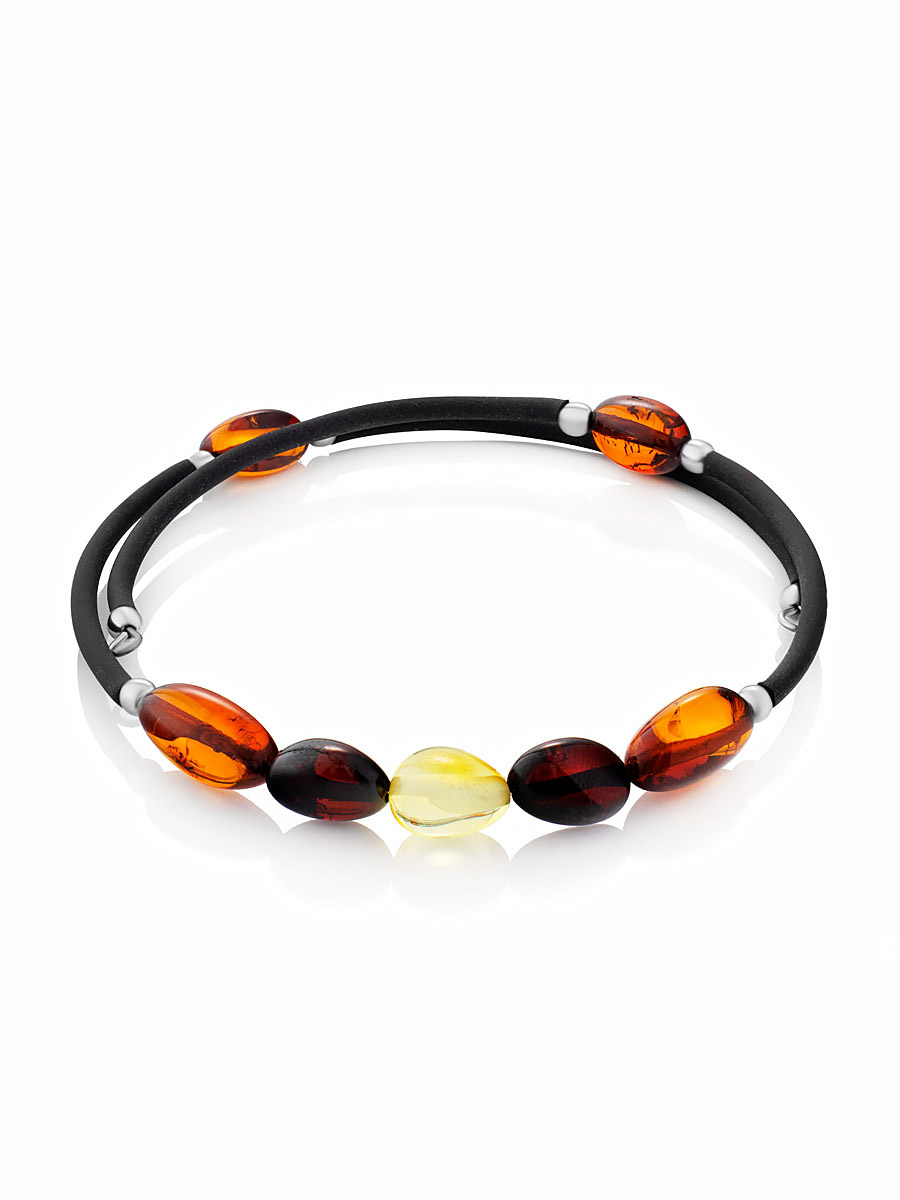 Стильный браслет на струне «Оклахома» с натуральным янтарём