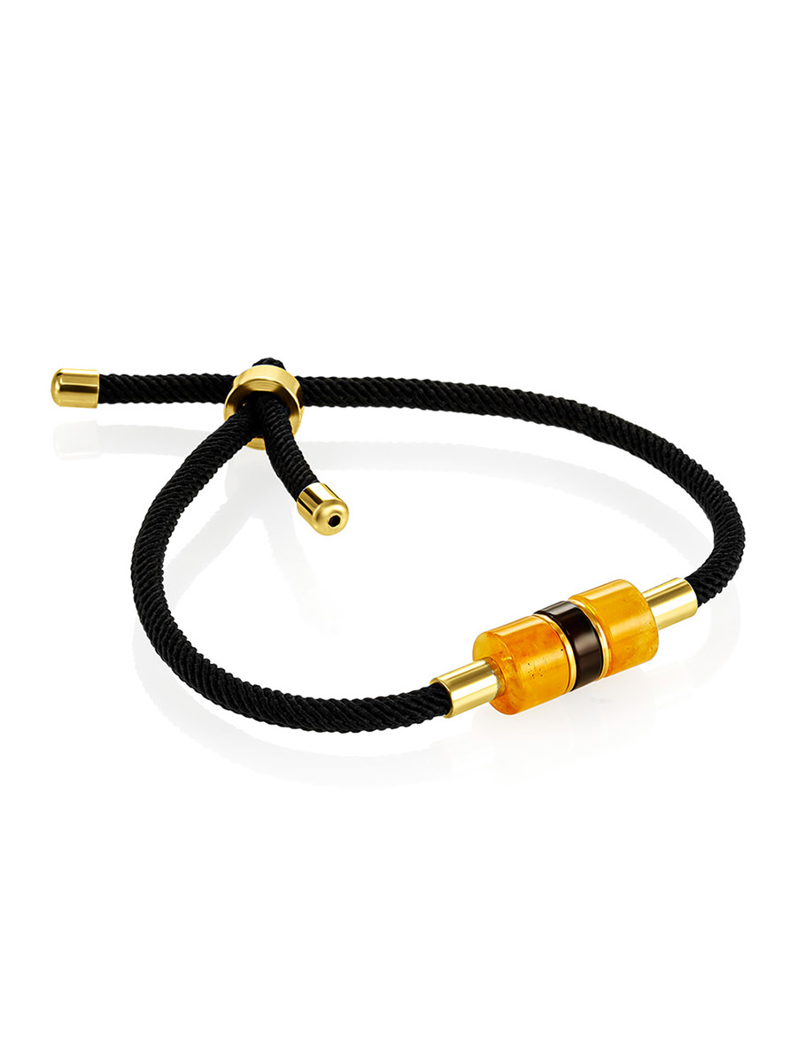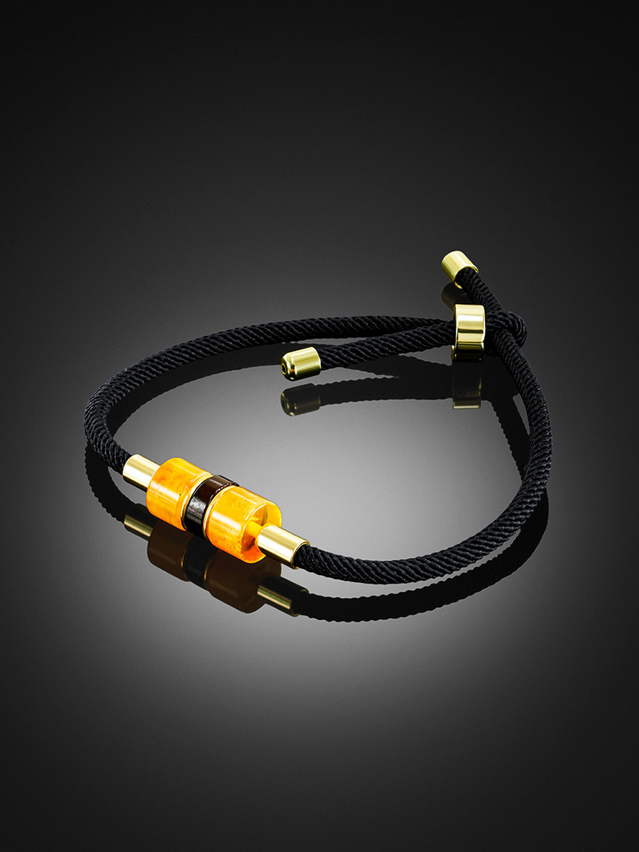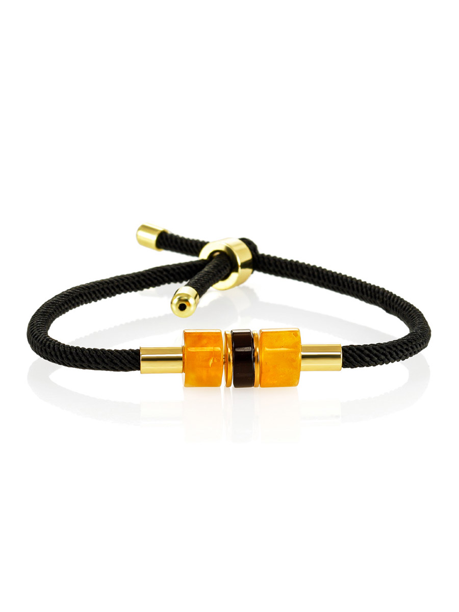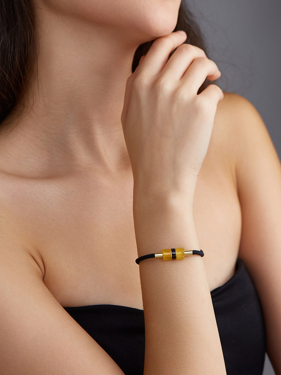 Стильный браслет-шнурок со вставками из натурального янтаря