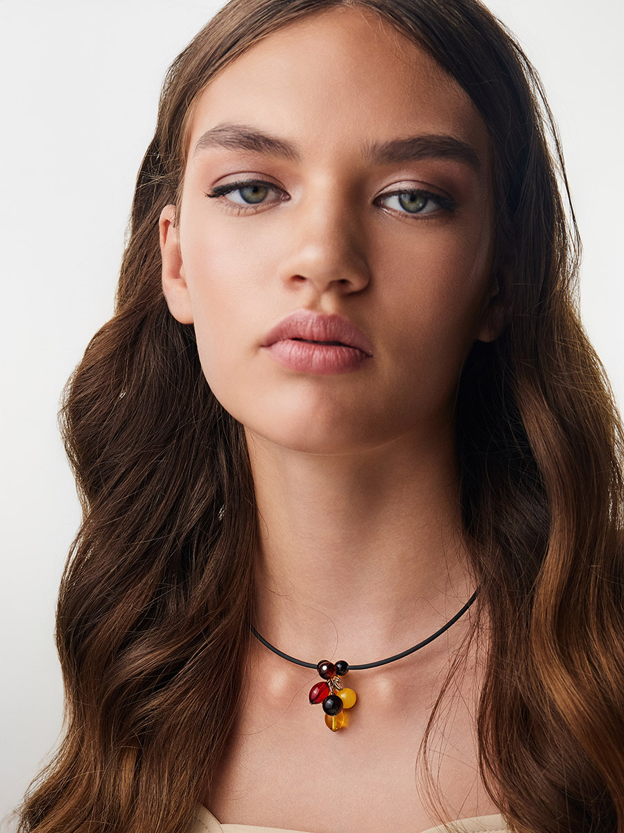Стильный чокер-обруч с подвеской из натурального янтаря «Оклахома»