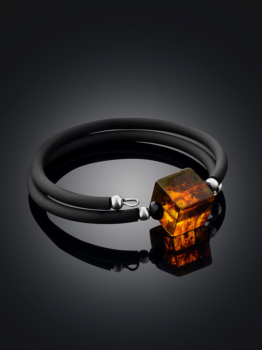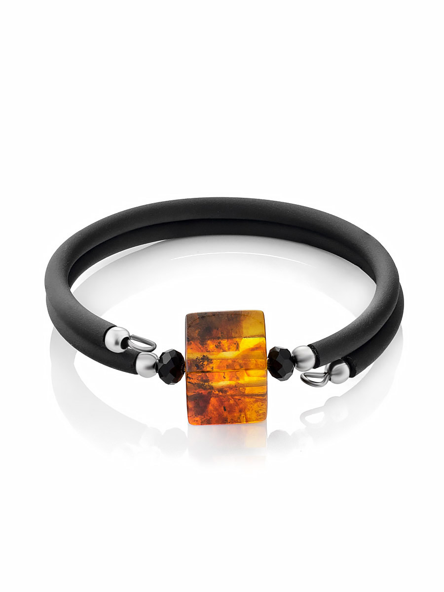 Стильный детский браслет на силиконовой основе с натуральным янтарём «Оклахома»