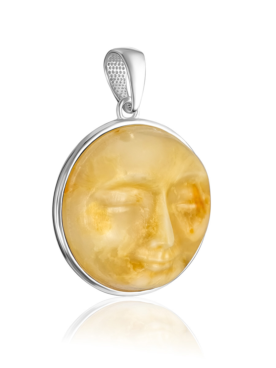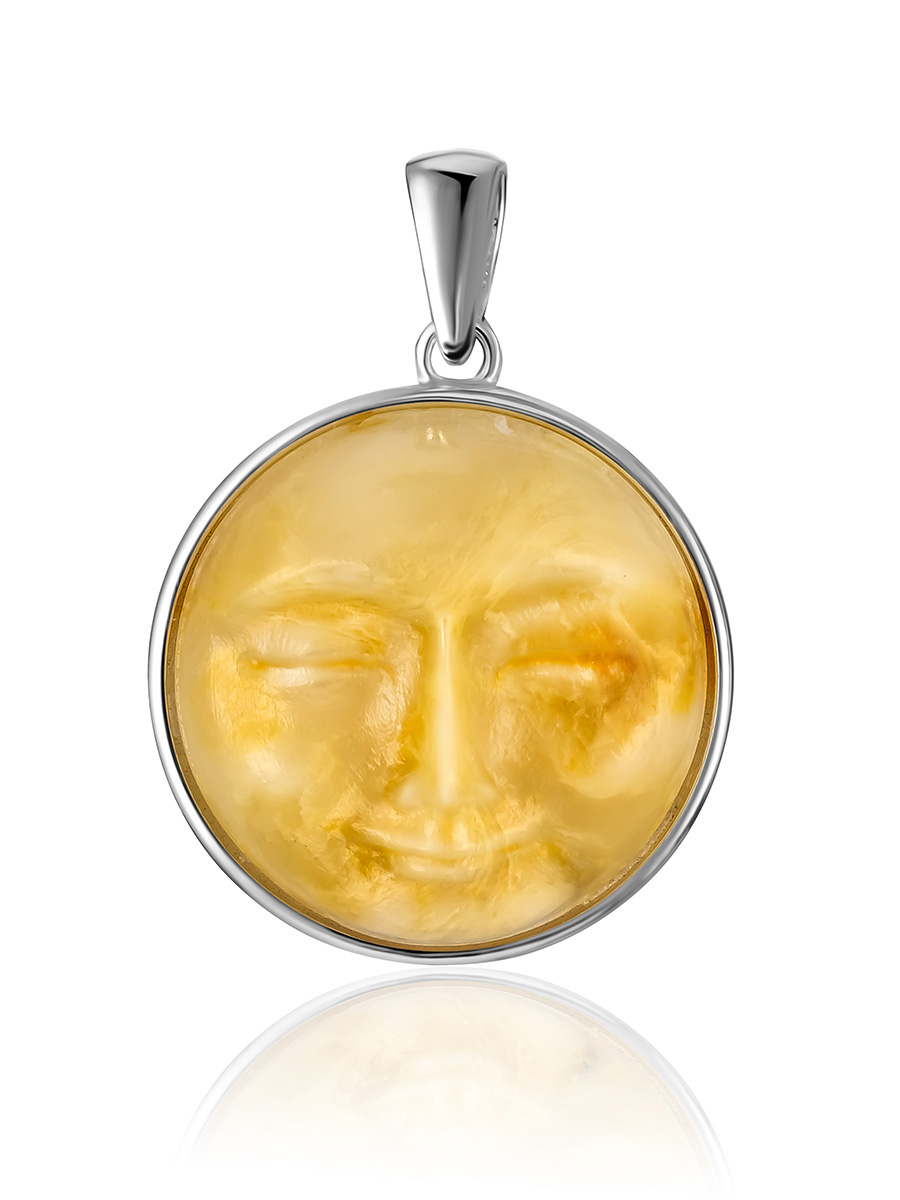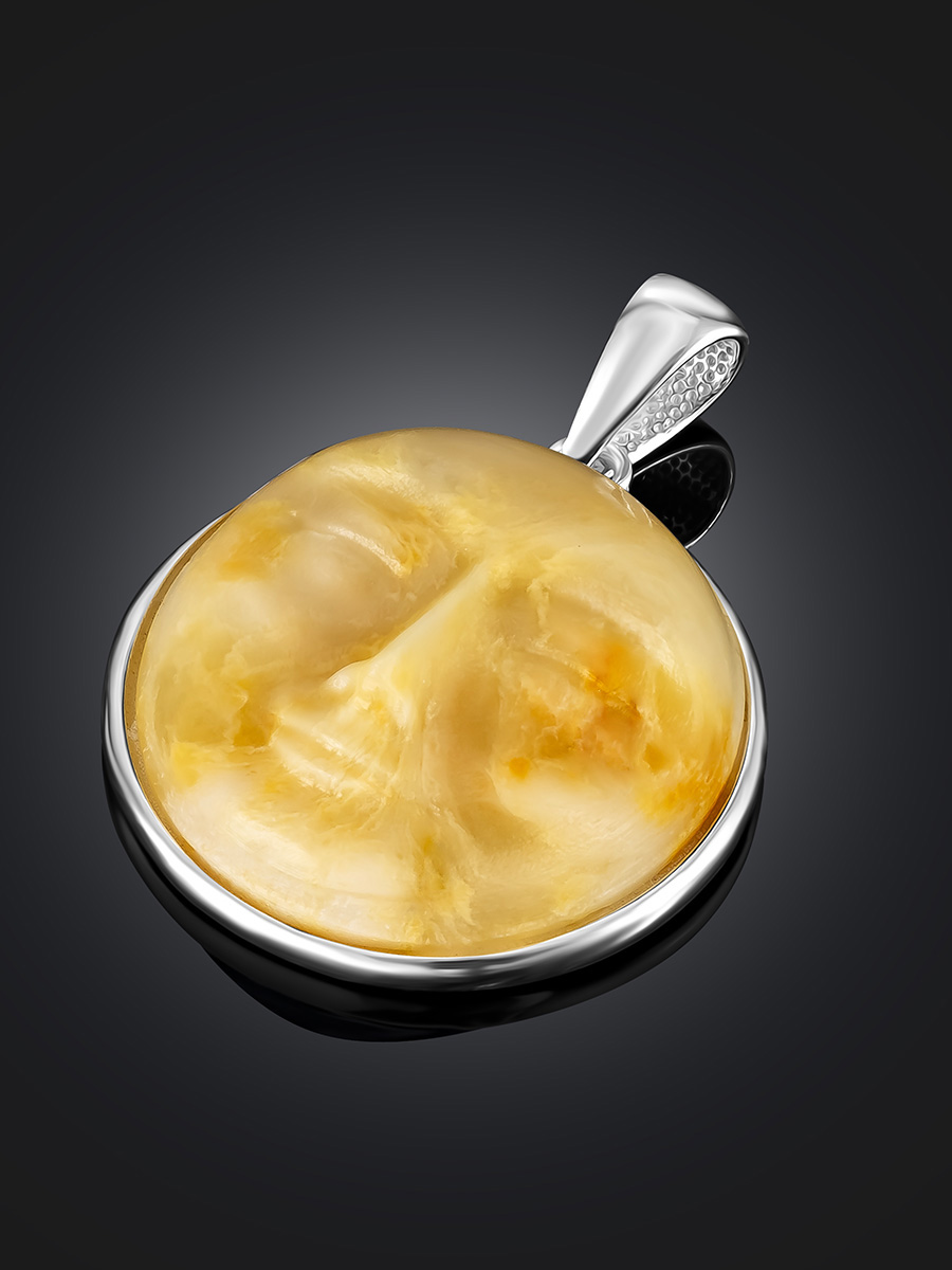 Стильный круглый кулон, украшенный резной янтарной вставкой «Луна»