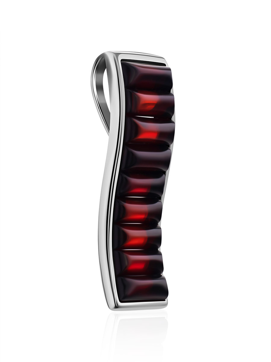 Стильный кулон с прямоугольными вставками вишневого янтаря «Мозаика»