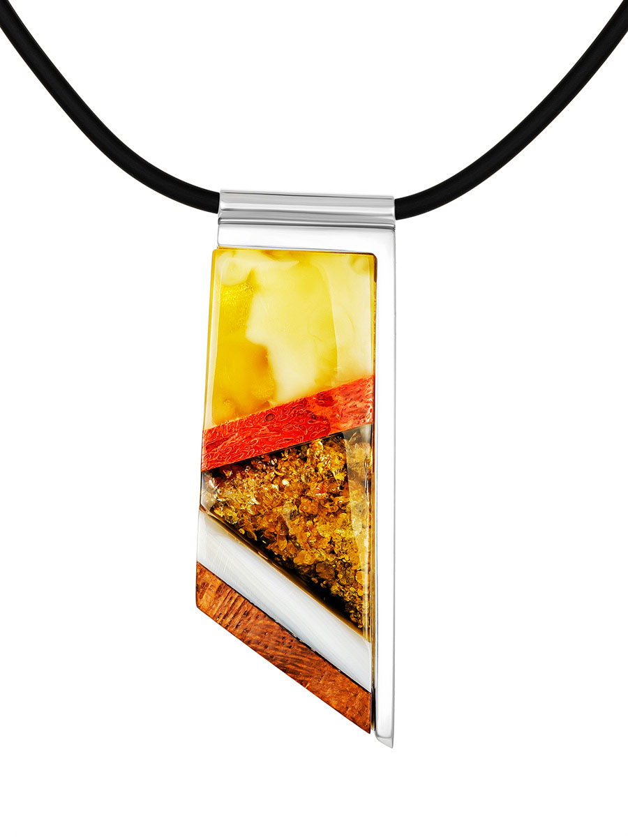 Размеры камня (мм): 13х15 Вес изд..показатьелия (г): 17.3 Размер / длина (см): 44 / 45 / 46 / 47 / 48 / 49 Цвет: микс Материалы: Натуральный янтарь / Натуральная древесина / Натуральный перламутр / Серебро 925° Коллекция: ИндонезияСтильный мозаичный кулон из натурального балтийского янтаря, дерева и перламутра в серебре «Индонезия»: 204511798_x000D_