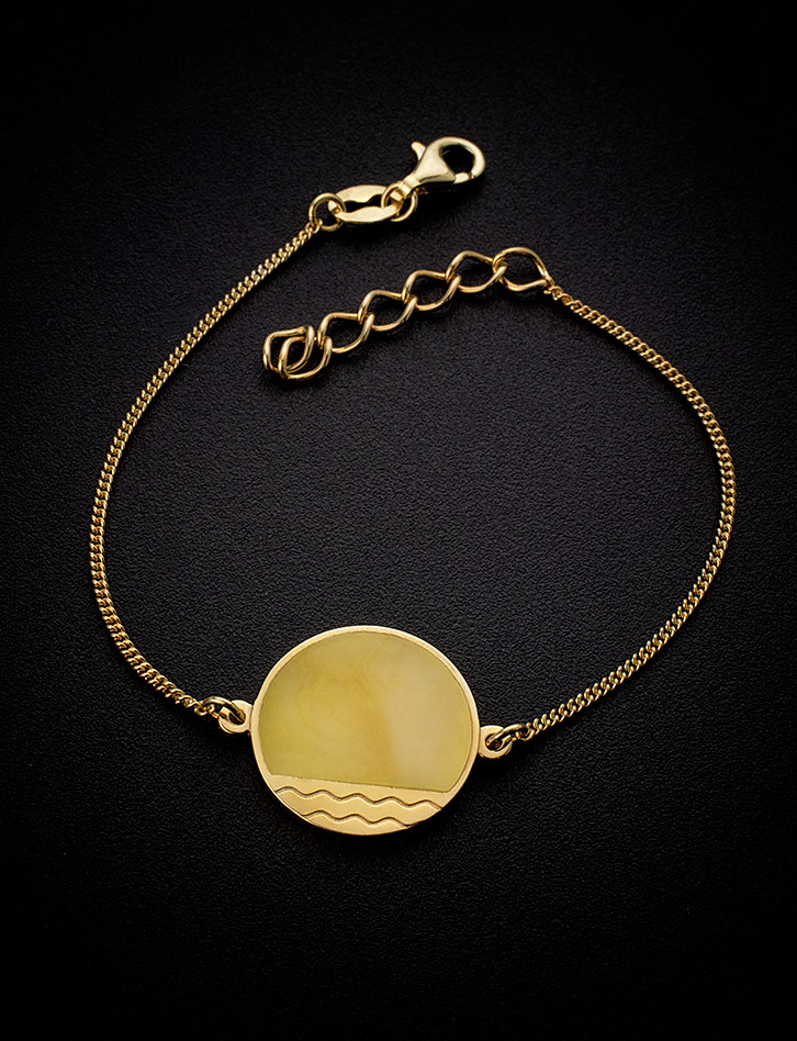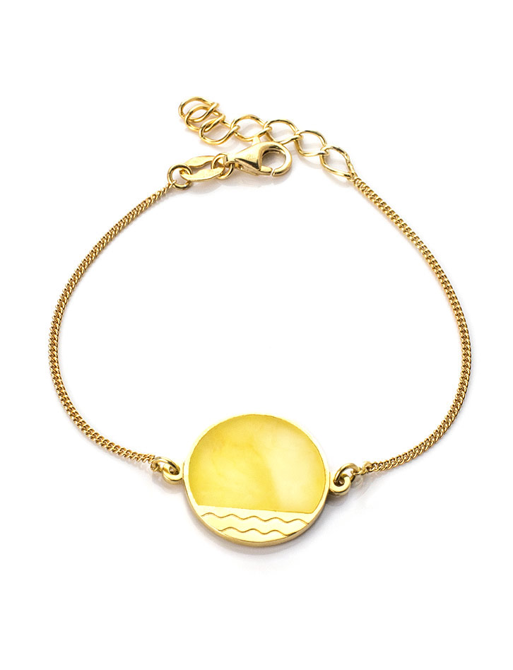 Стильный позолоченный браслет «Монако» с медовым янтарём Янтарь®