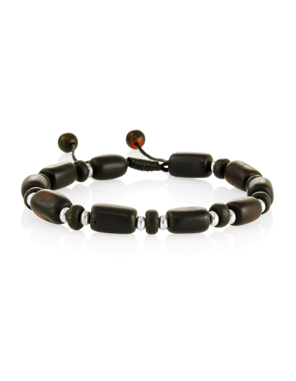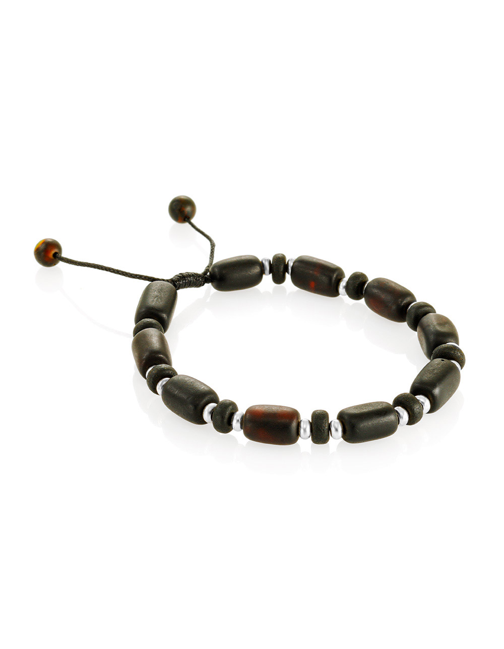 Стильный янтарный браслет «Бочонок матовый тёмно-вишнёвый»
