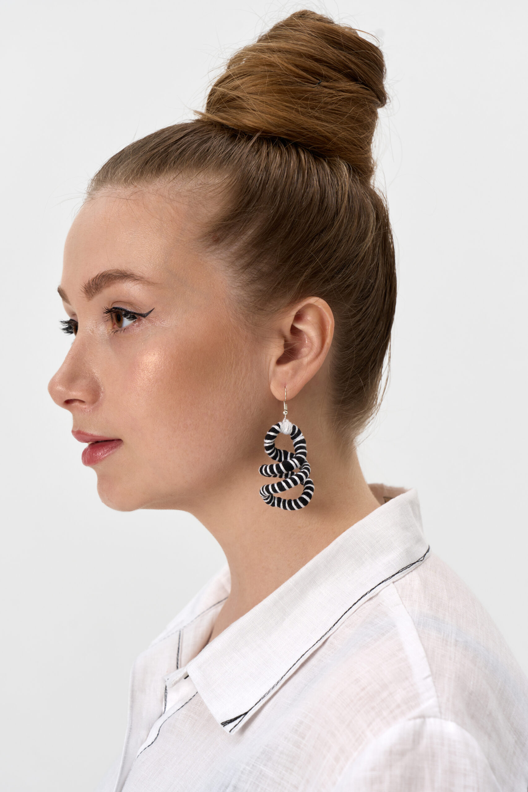 Серьги – подвески текстильные каркасные. Длина формы 6см. Состав лен, вискоза.