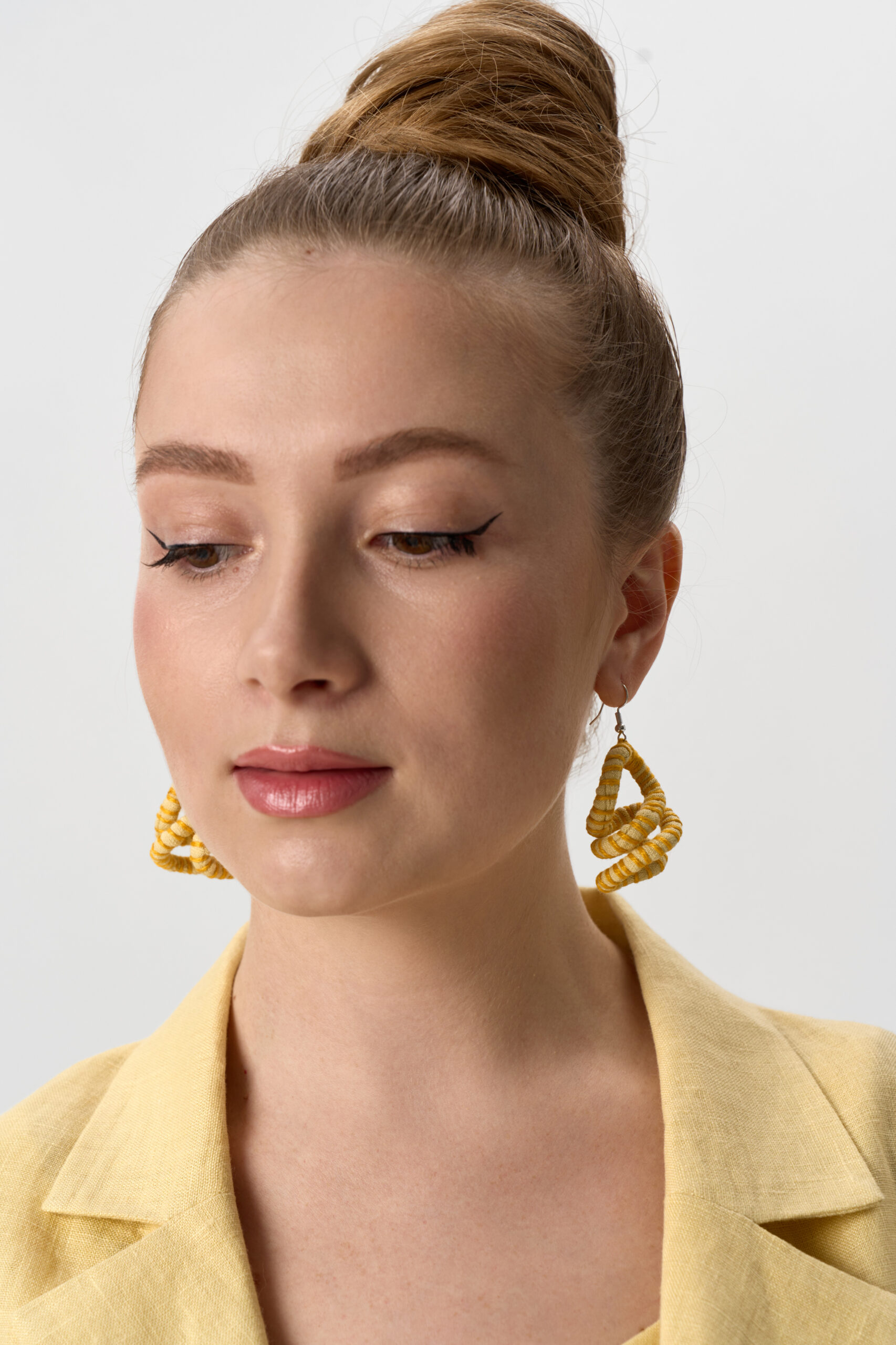 Серьги – подвески текстильные каркасные. Длина формы 6см. Состав лен, вискоза.