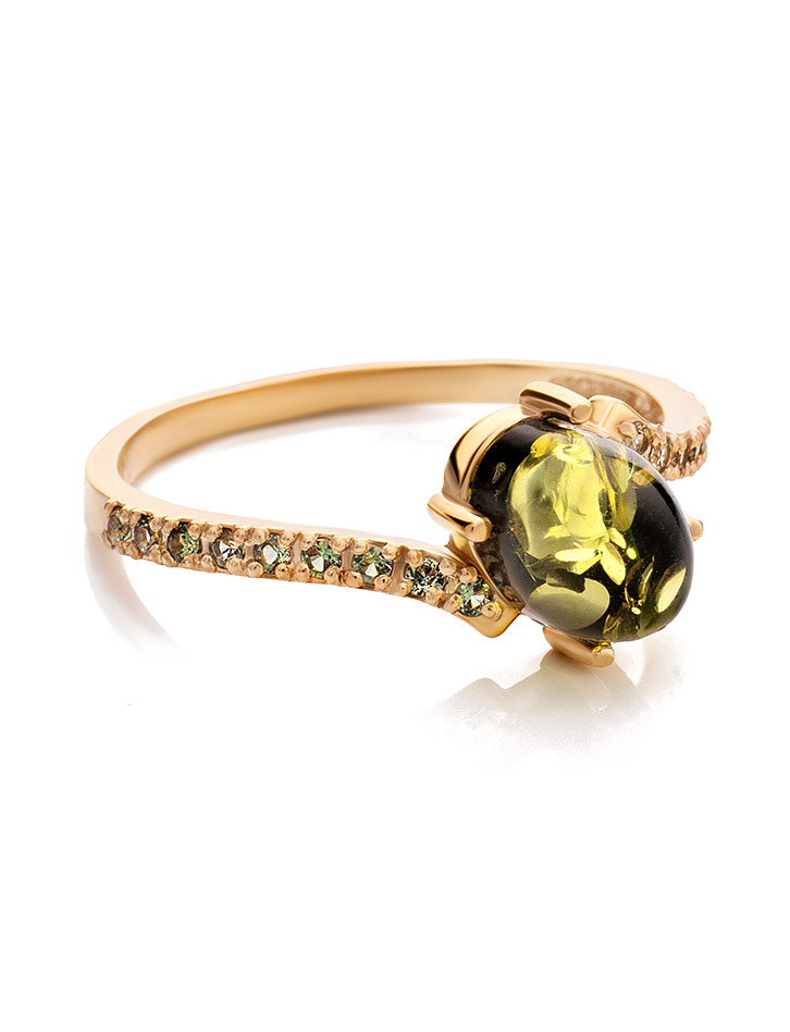 Тонкое изящное кольцо с зелёным янтарём «Ренессанс»