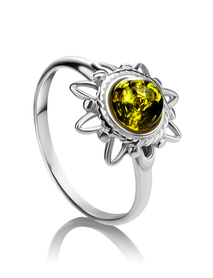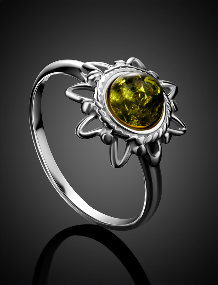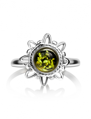 Тонкое кольцо и янтаря зелёного цвета «Гелиос»