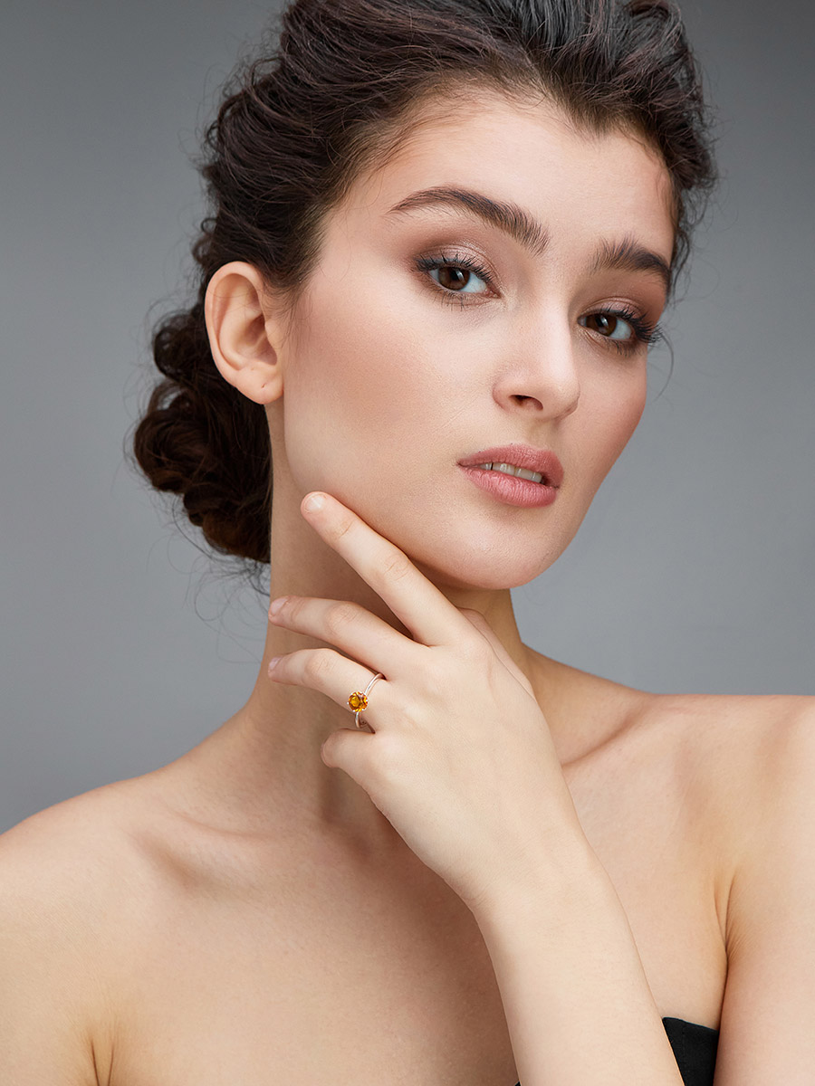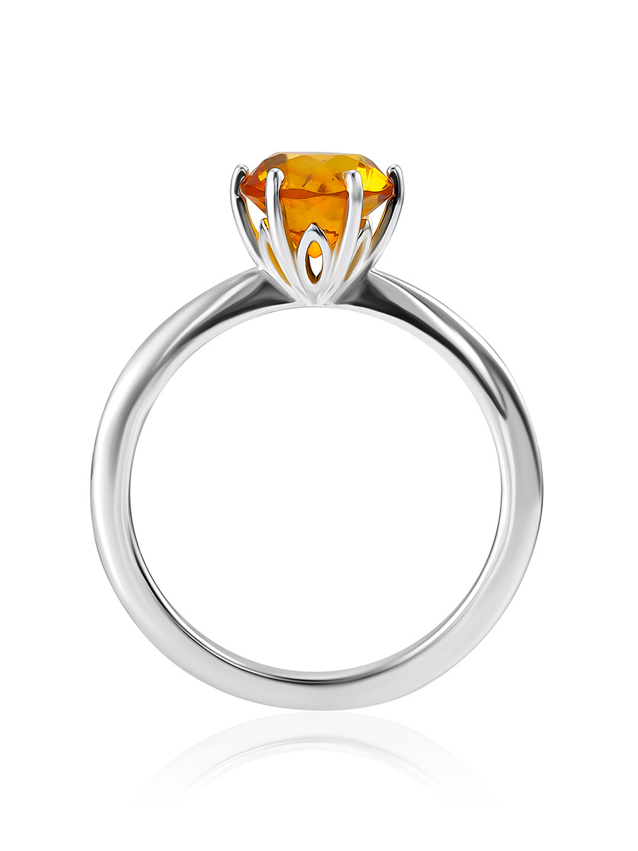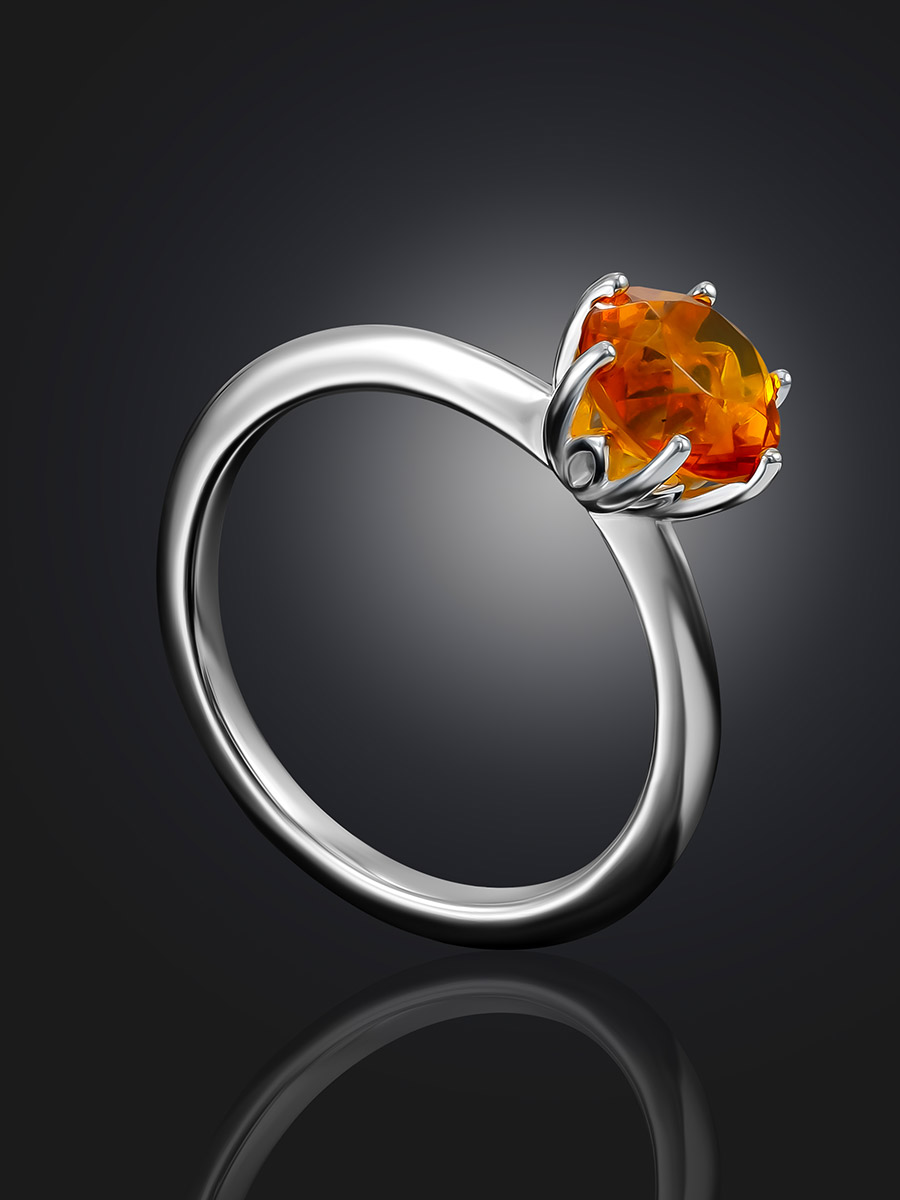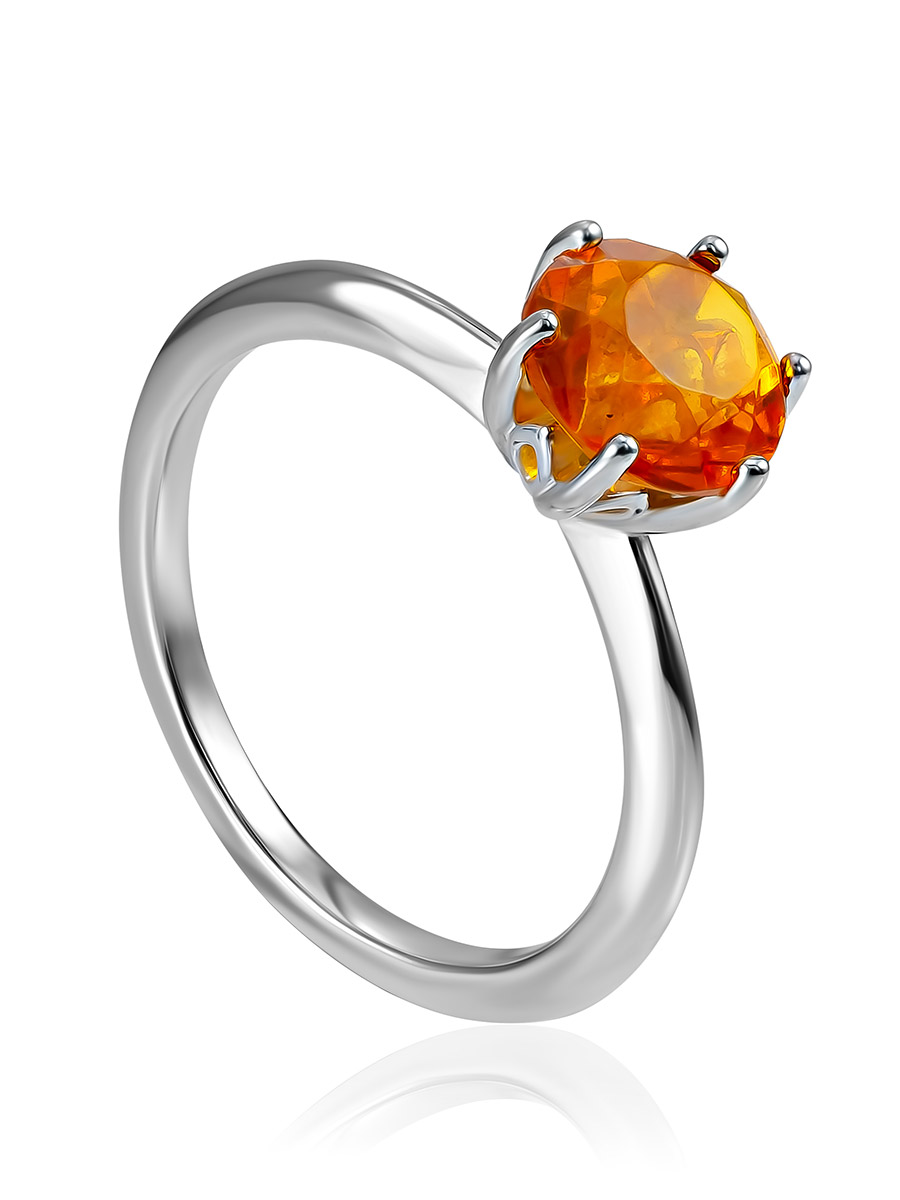 Тонкое лёгкое кольцо с гранёным коньячным янтарём «Баккара»