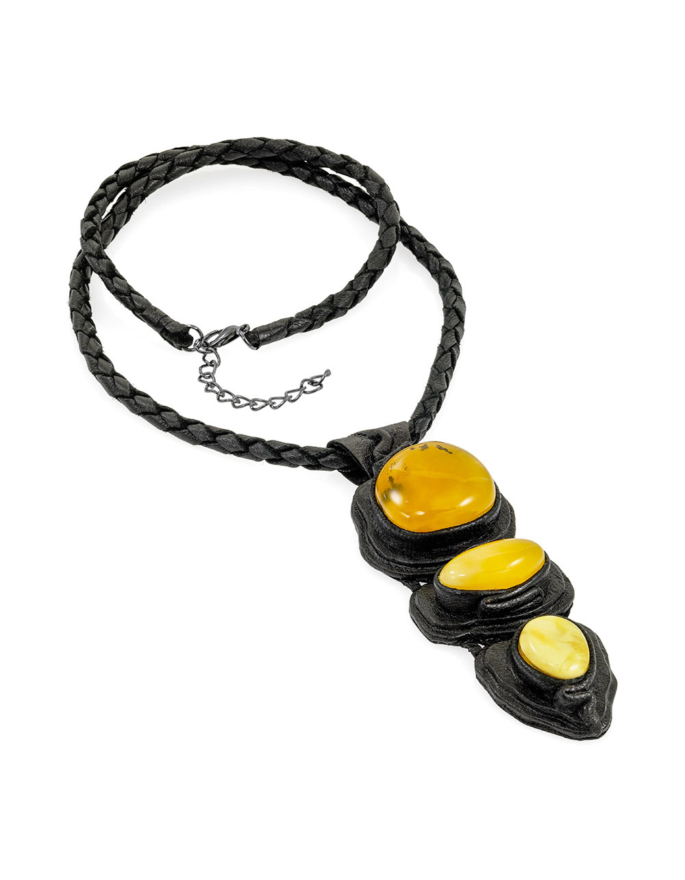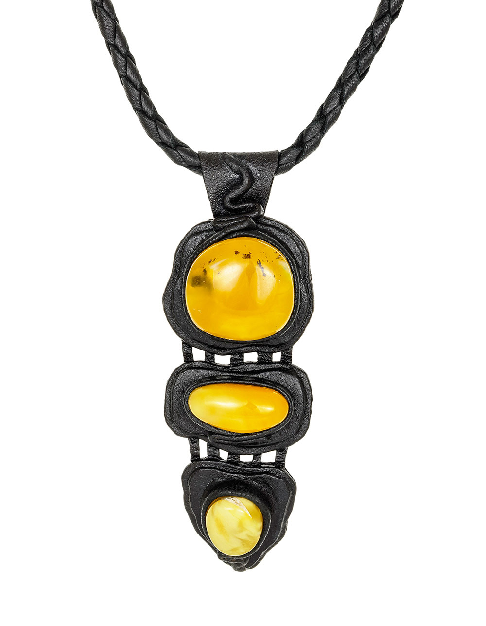 Три камня с разводами — будто застывшие потоки древней смолы. Кожаный шнур подчеркивает природную фактуру и придает этнические мотивы._x000D_