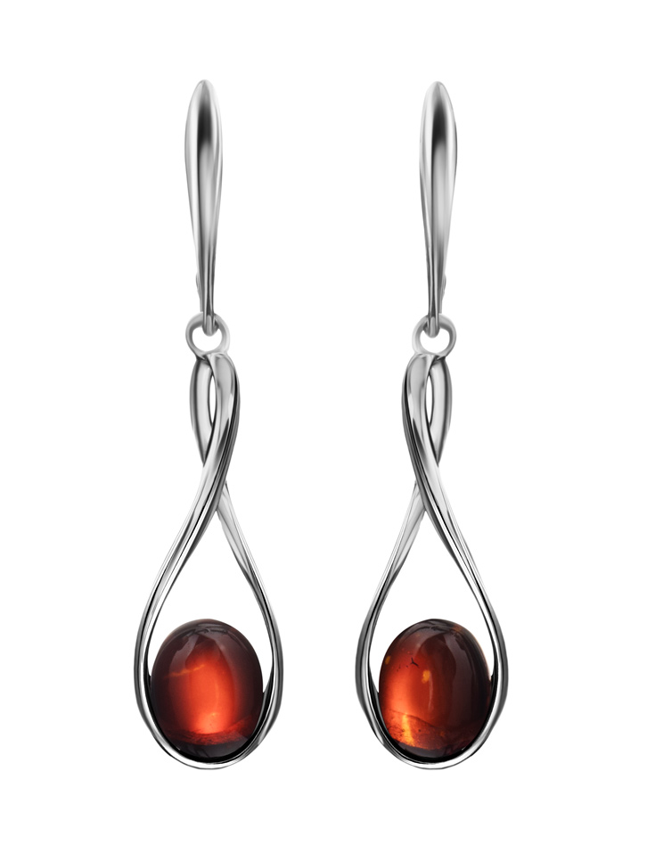 Удлинённые серьги из цельного вишнёвого янтаря «Примавера»
