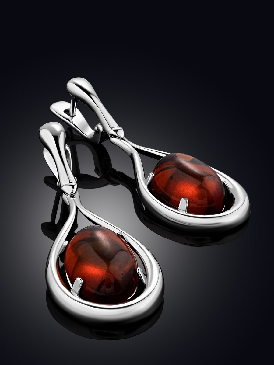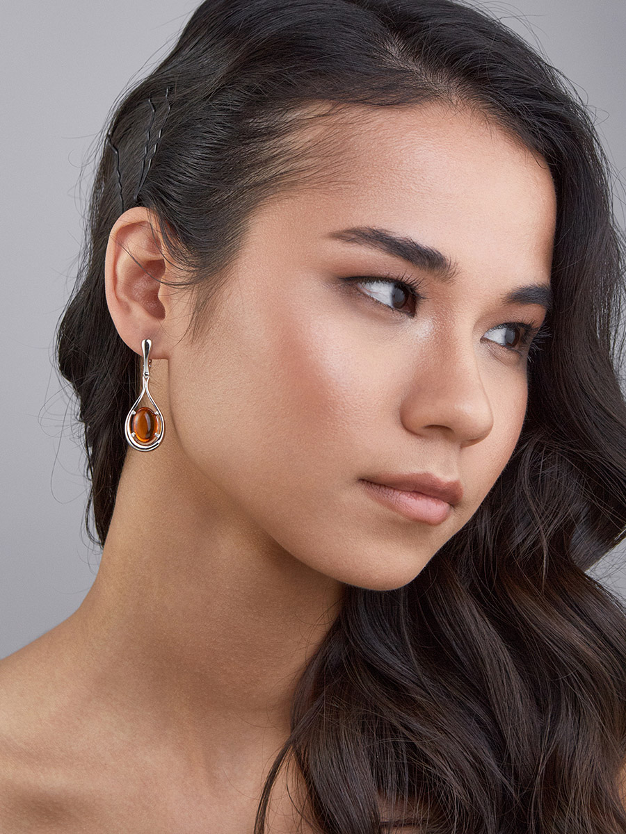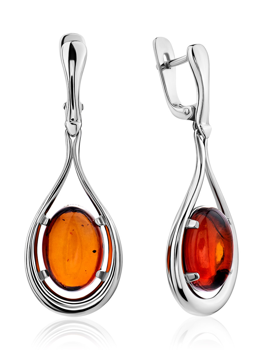 Удлинённые серьги с натуральным янтарём коньячного цвета «Сонет»