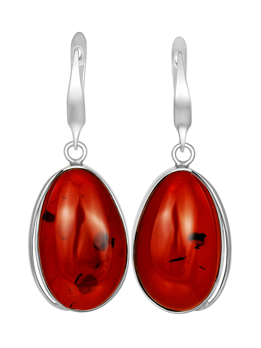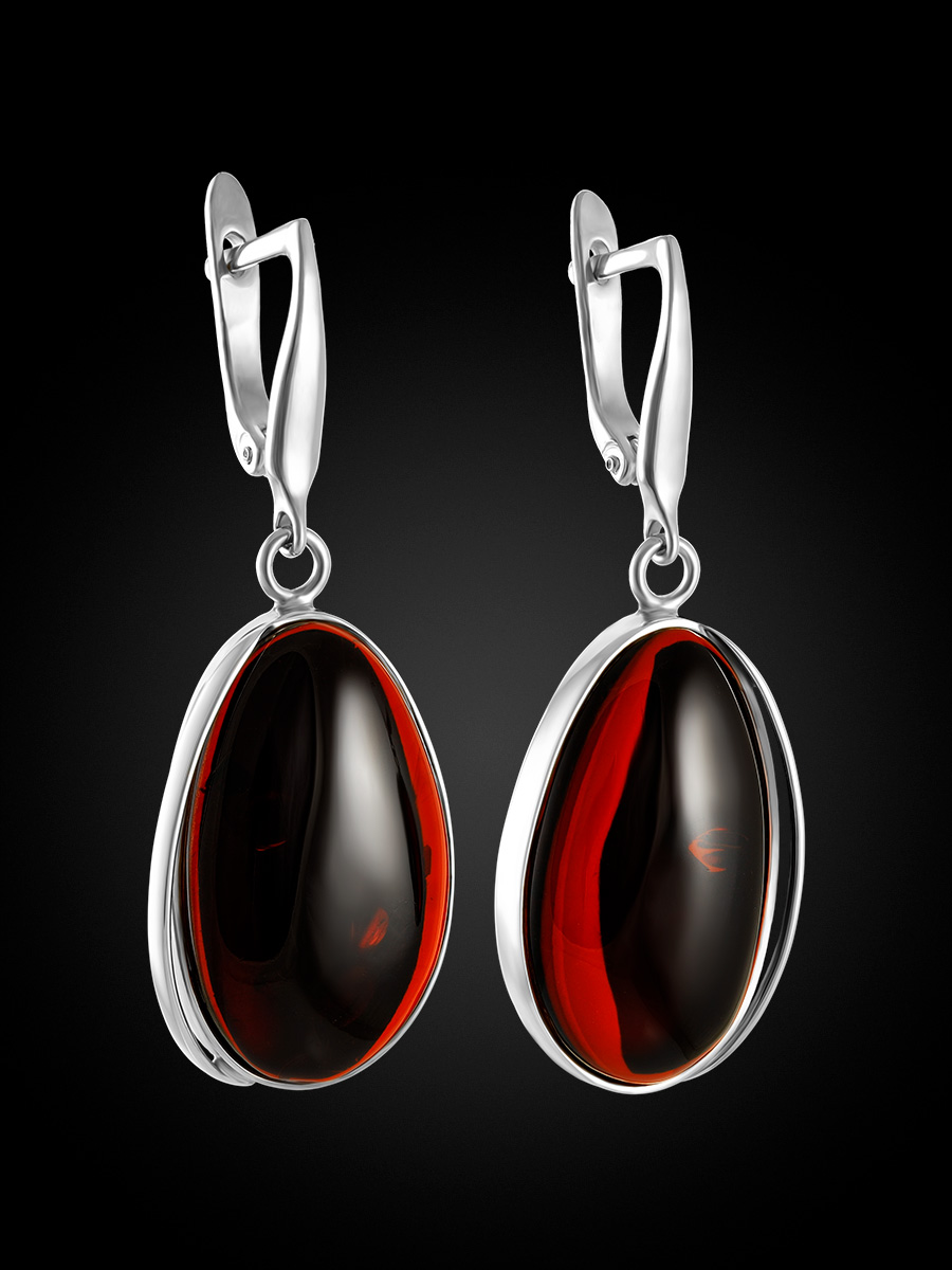 Удлиненные серьги с тёмно-вишнёвым янтарем «Лагуна»
