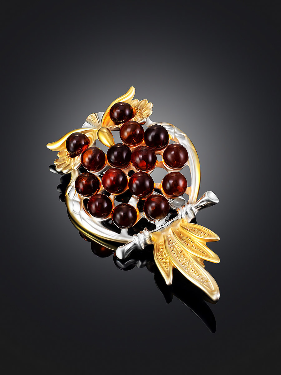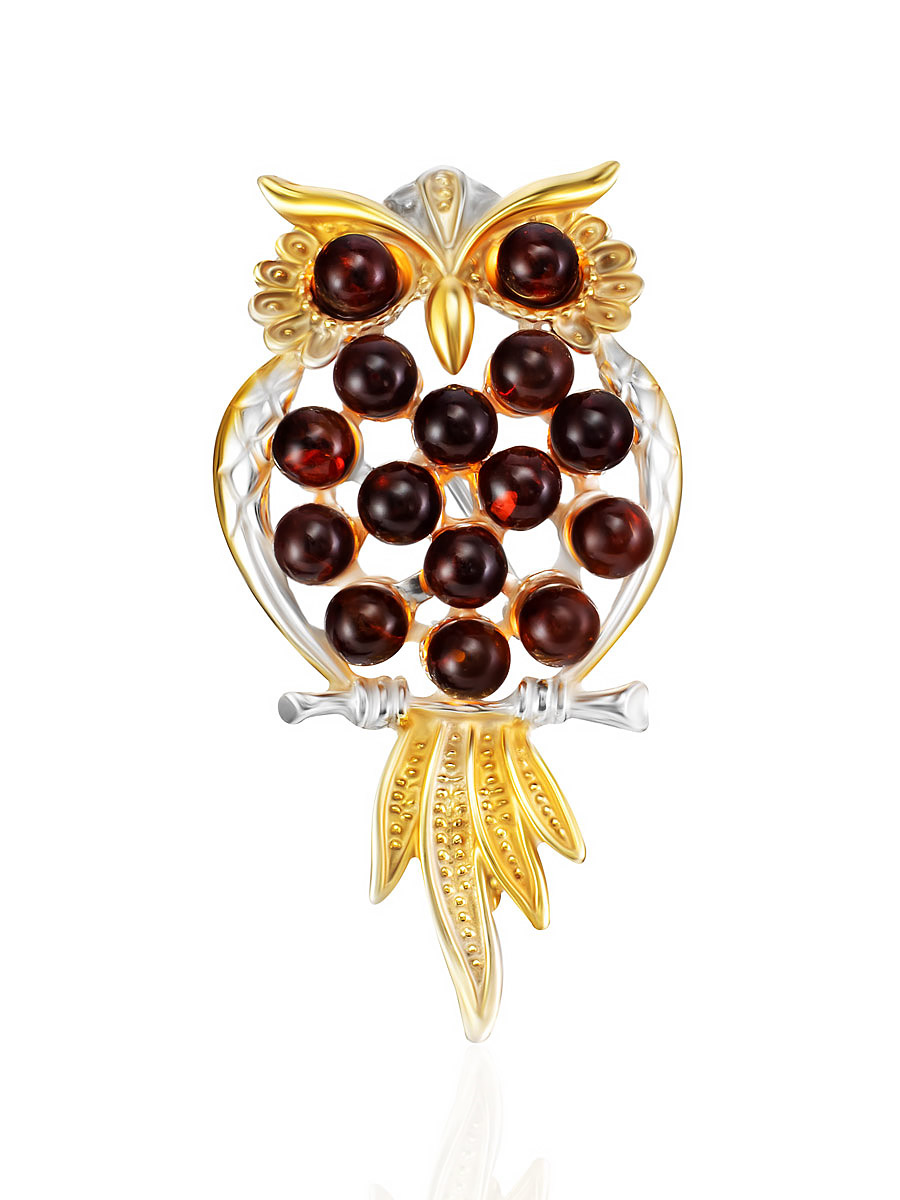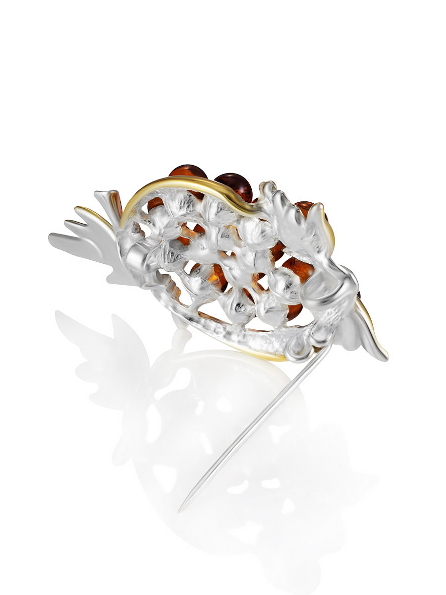 Ухху!-брошь с маленькими бусинами коньячного янтаря «Совушка»