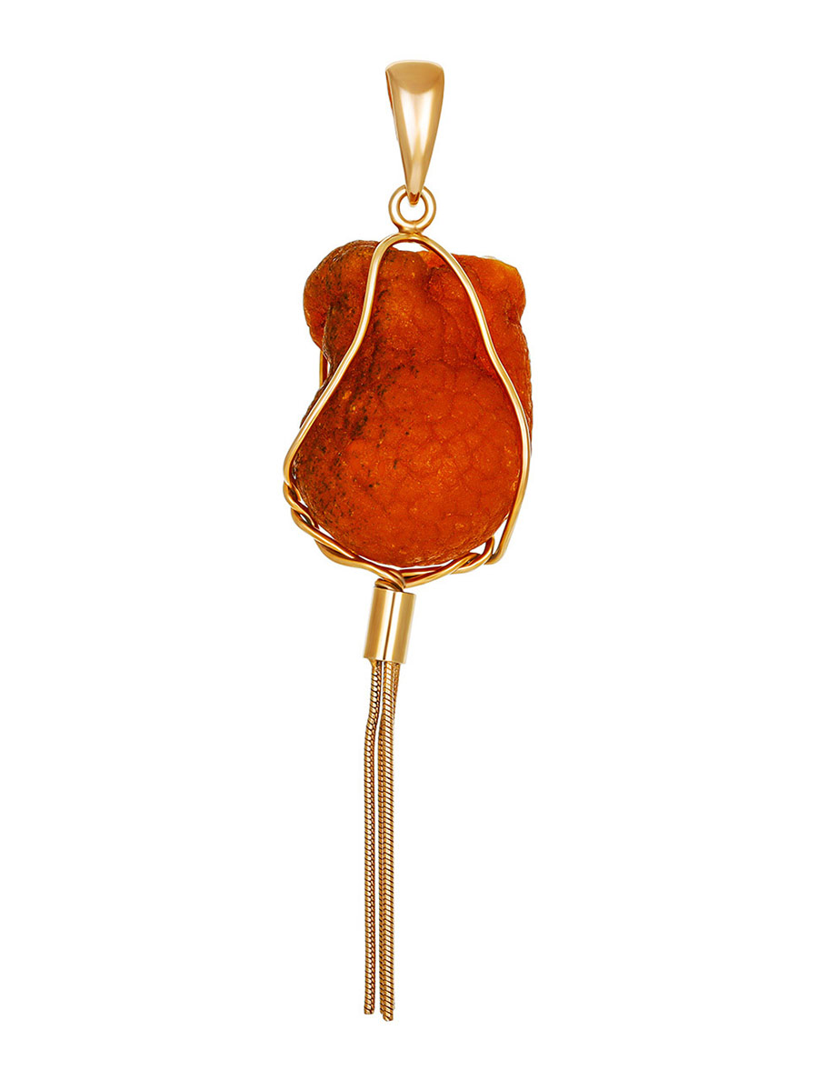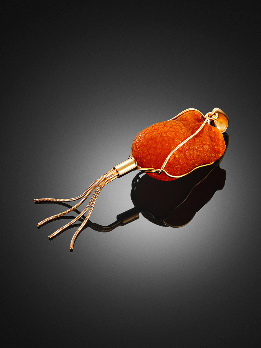 Уникальный кулон из цельного природного янтаря в оправе с кисточкой «Неолит»