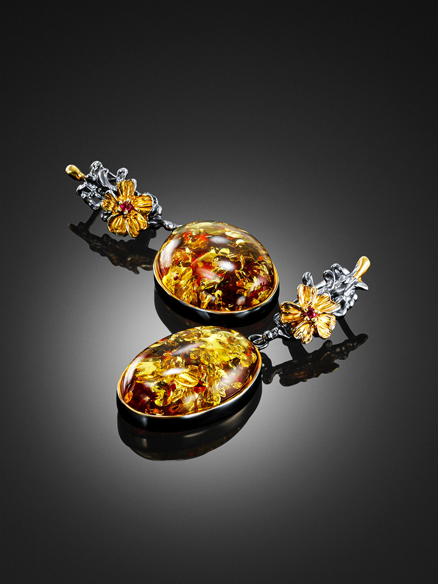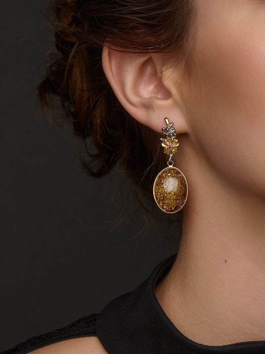 Вечерние серьги «Версаль» с искрящимся янтарём
