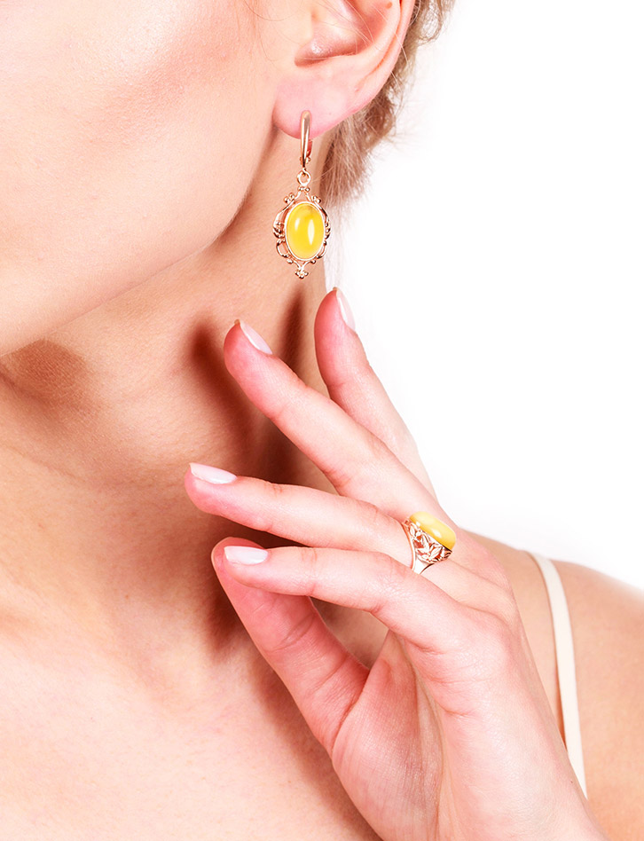 Великолепные серьги «Кармен»с ярко-медовым янтарём