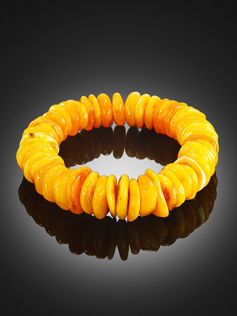 Янтарный браслет на резинке «Шайба средняя медовая»