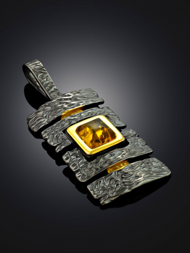 Яркая оригинальная подвеска из золотистого янтаря «Бубинга»