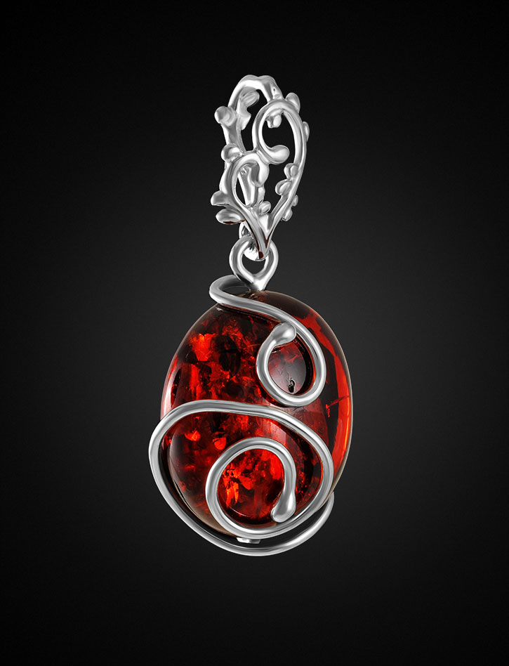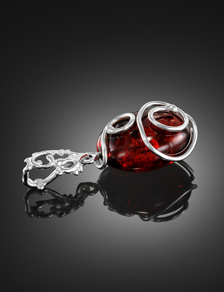 Яркая подвеска из натурального балтийского вишнёвого янтаря «Риальто»