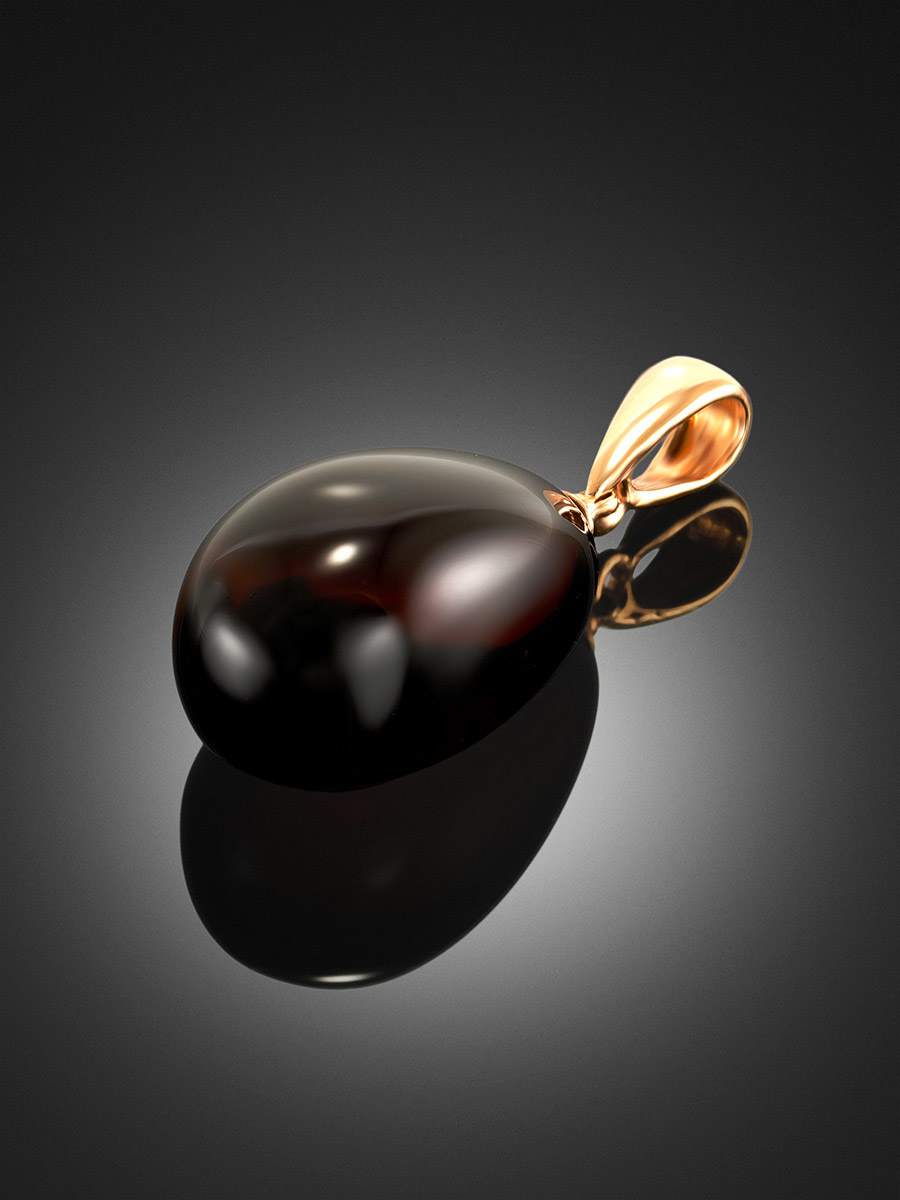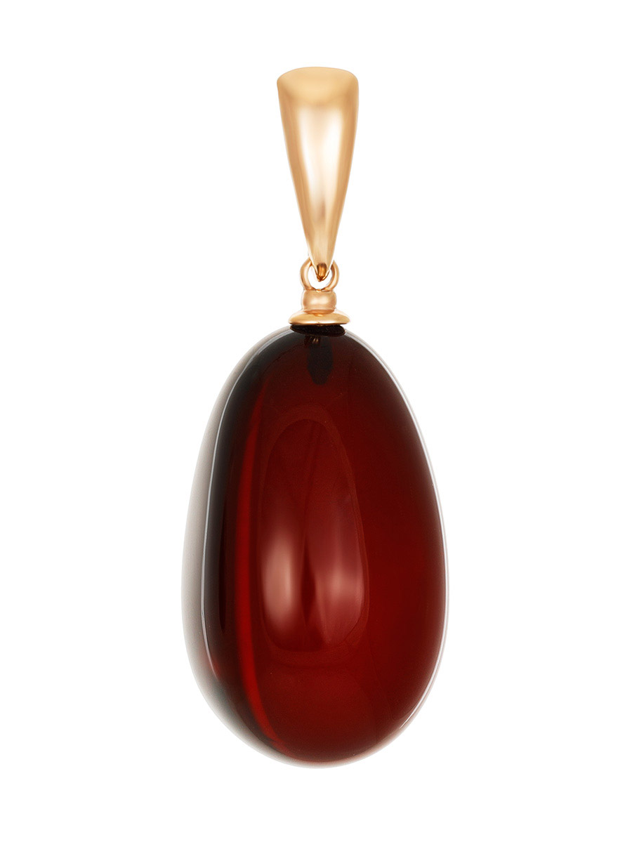 Яркая подвеска из натурального янтаря тёмно-вишнёвого цвета
