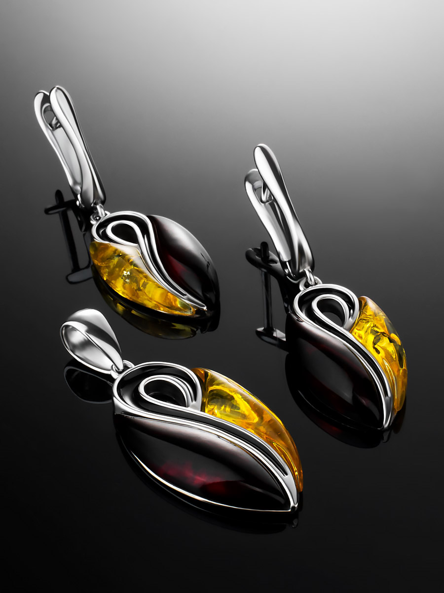 Яркая подвеска «Санрайз» из разноцветного янтаря