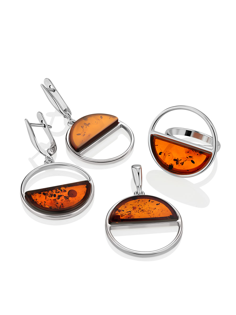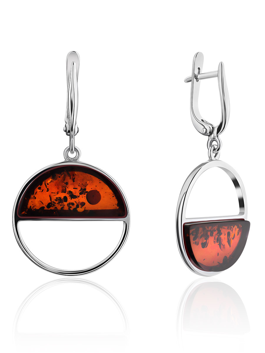 Яркие асимметричные серьги с коньячным янтарём «Монако»