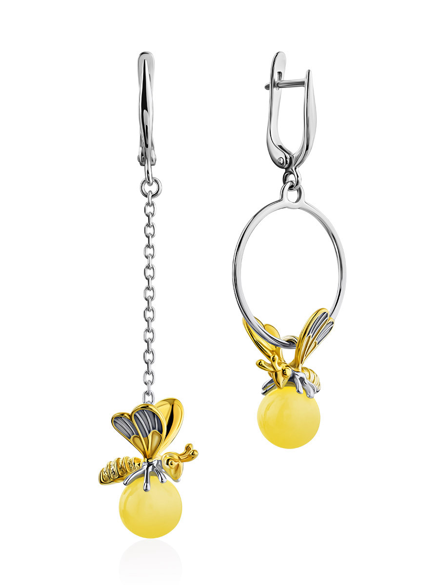 Яркие эффектные серьги «Винни Пух» из медового янтаря