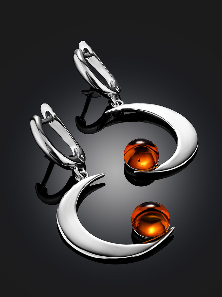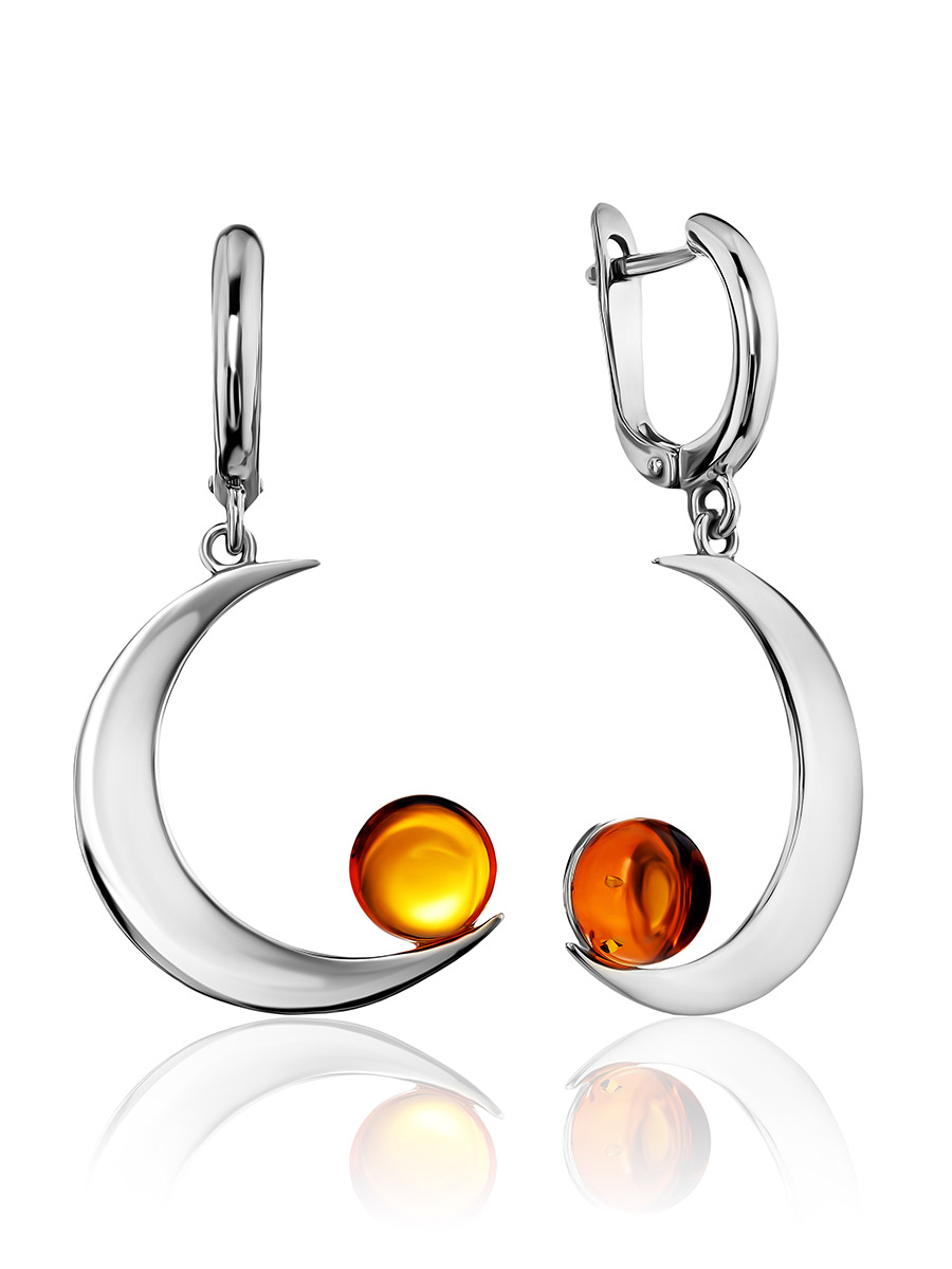 Яркие и оригинальные серьги «Персия» из янтаря коньячного цвета