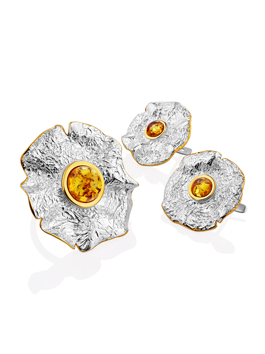 Яркие крупные серьги «Мак» из натурального золотистого янтаря