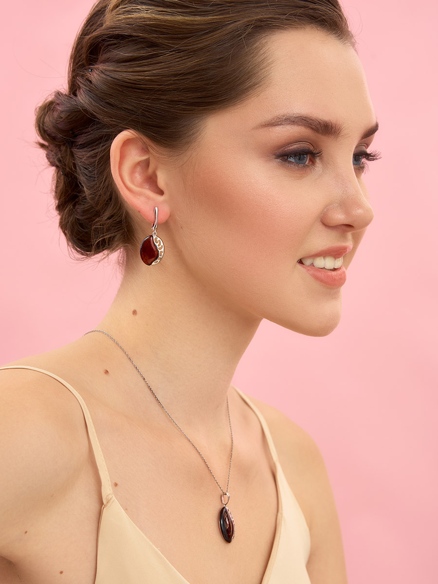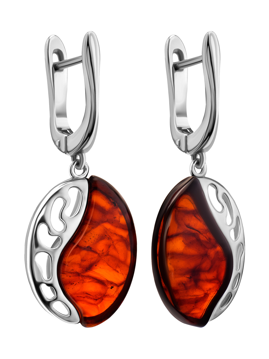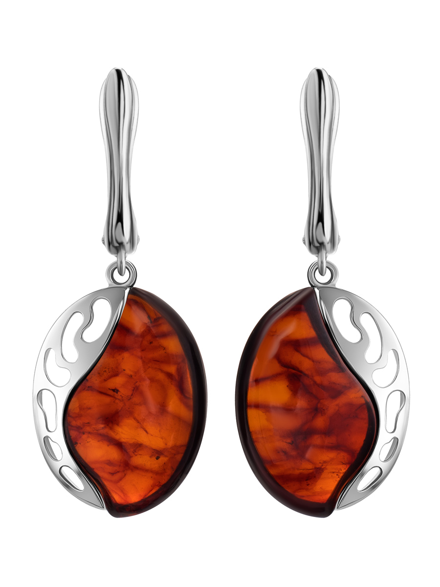 Яркие овальные серьги из тёмно-коньячного янтаря «Санрайз»