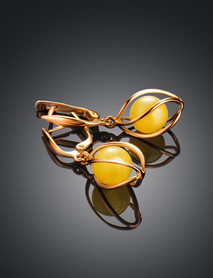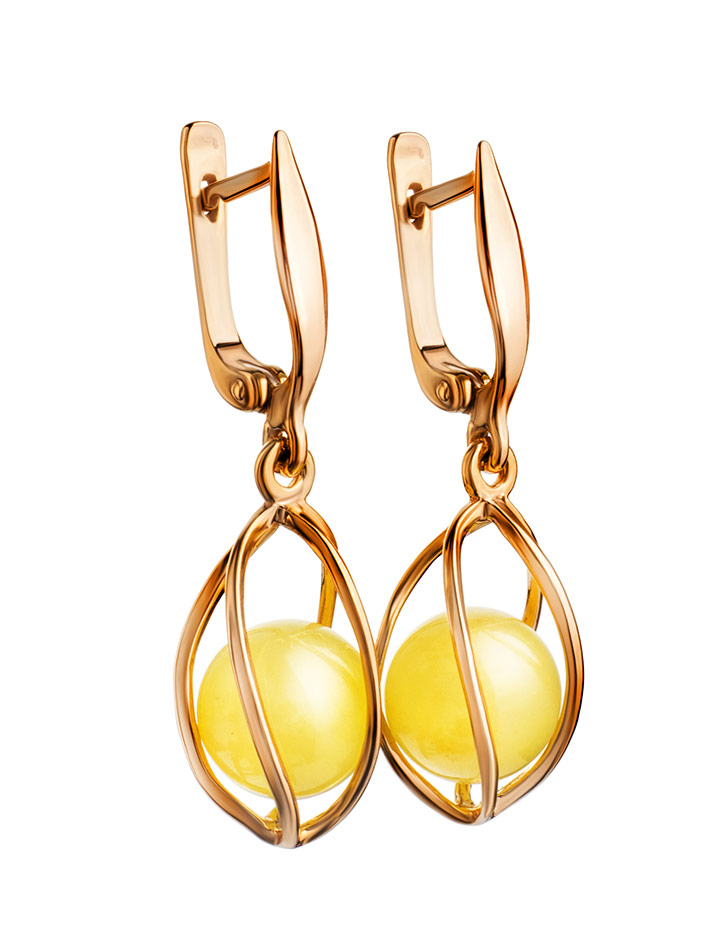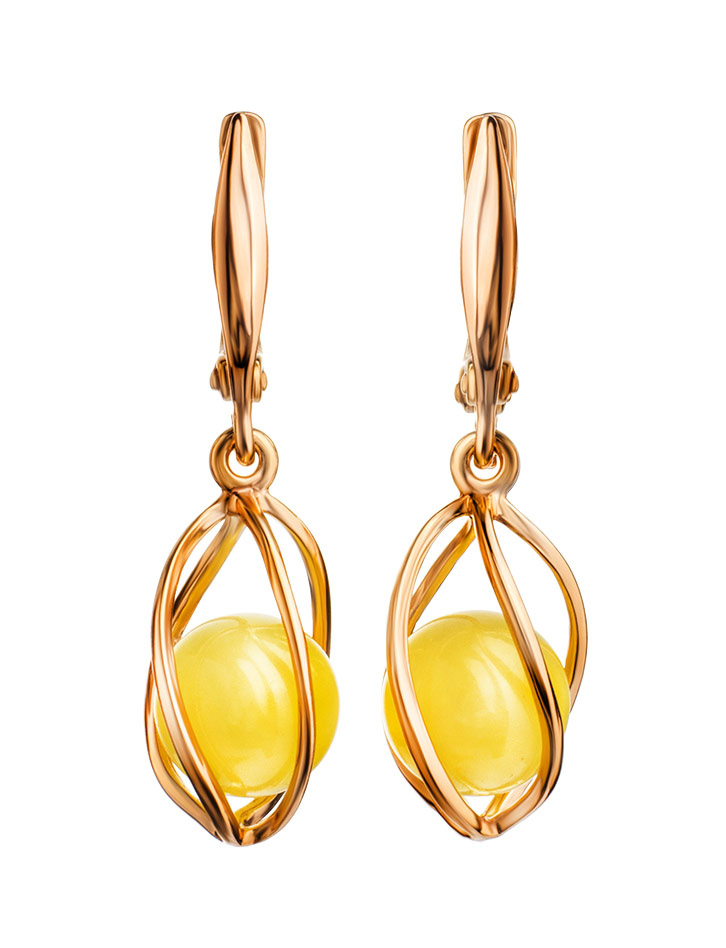 Яркие позолоченные серьги с натуральным медовым янтарём «Алжир»