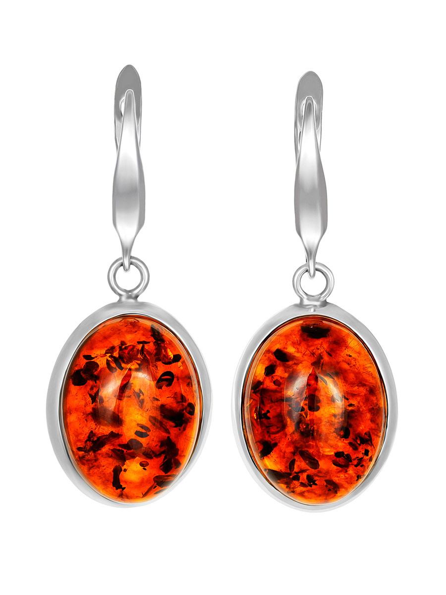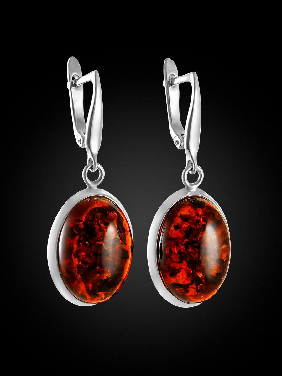 Яркие серьги «Глянец» из натурального балтийского янтаря тёмно-коньячного цвета